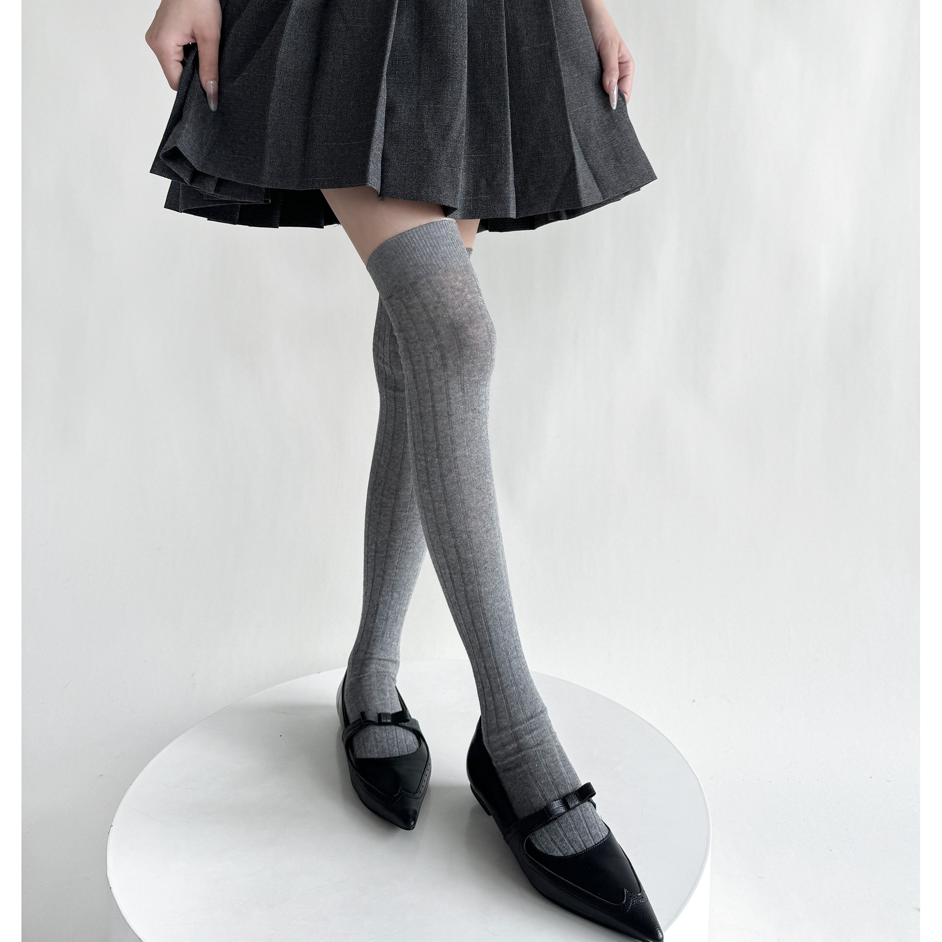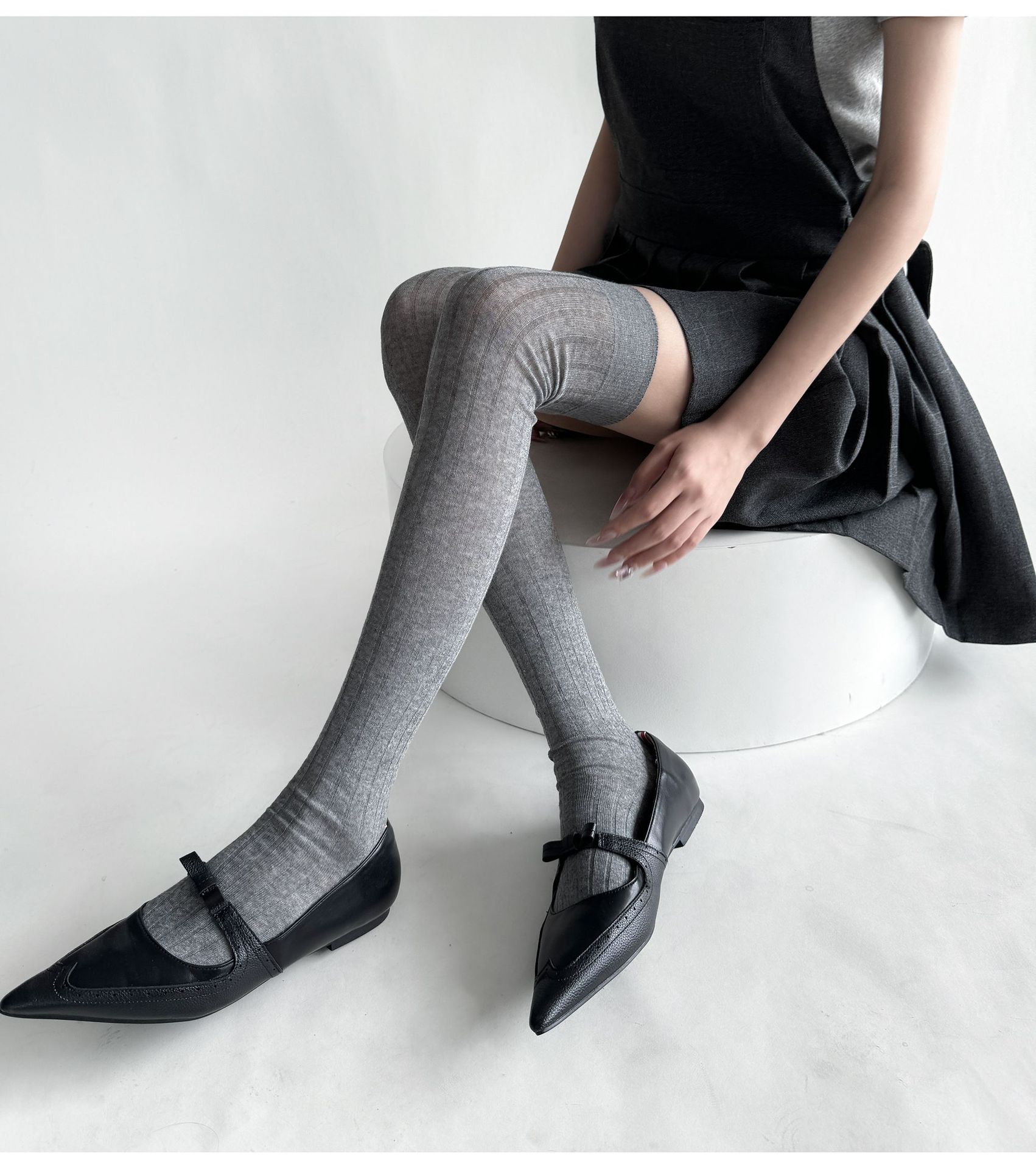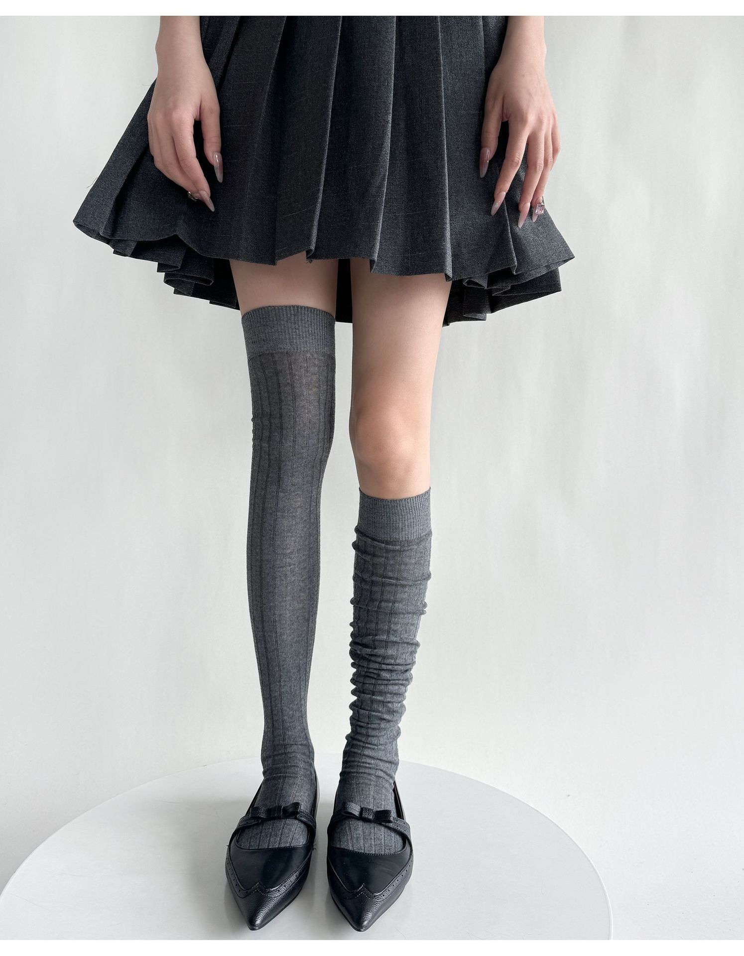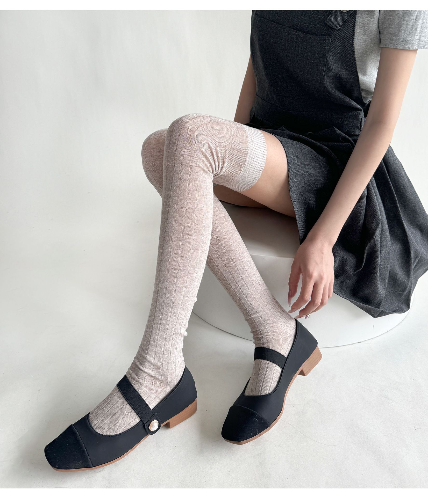 봄과 여름 얇은 면 마이크로 투명 수직 무릎 양말 여성 여름 한국식 슬리밍 높은 양말 단색 간단한 송아지 양말