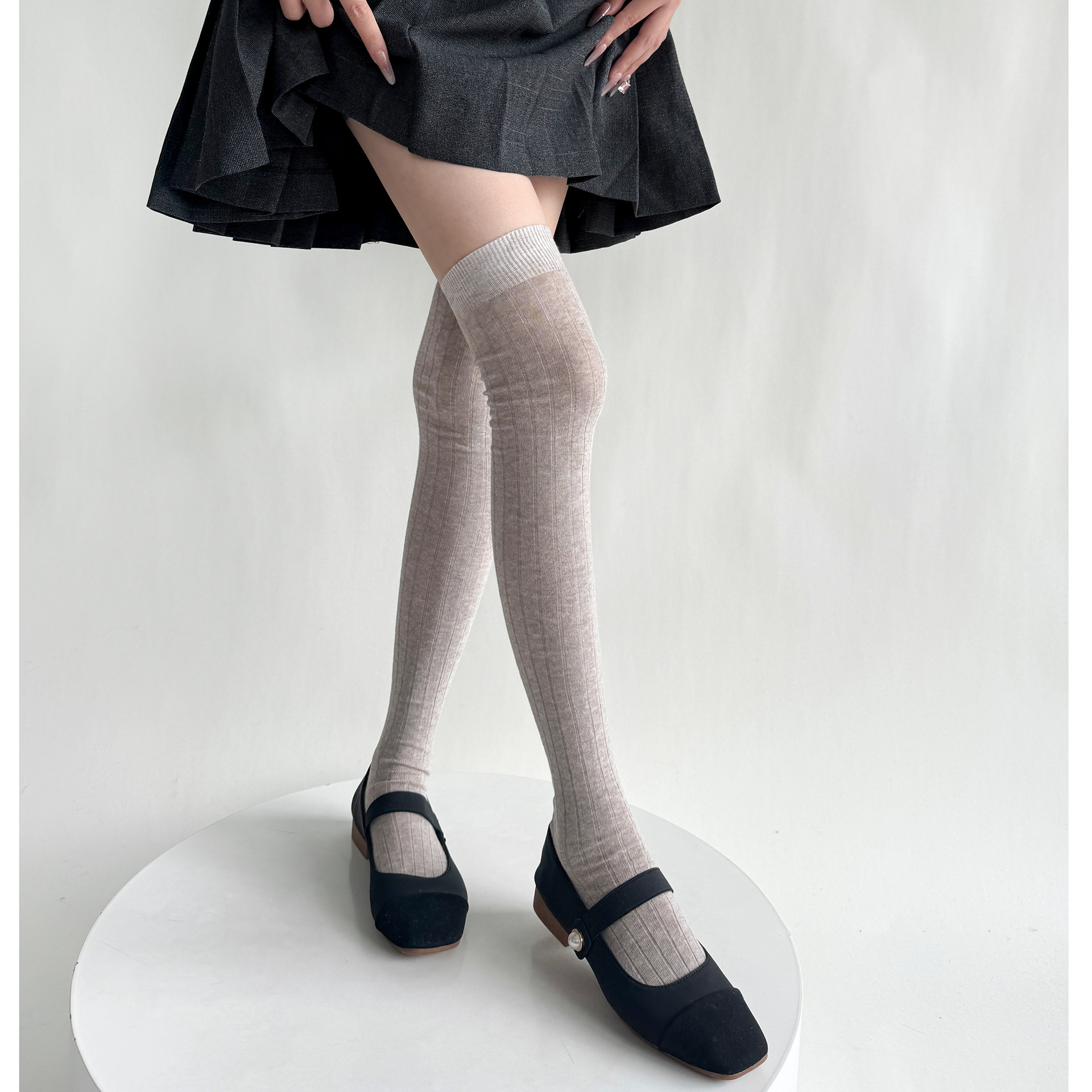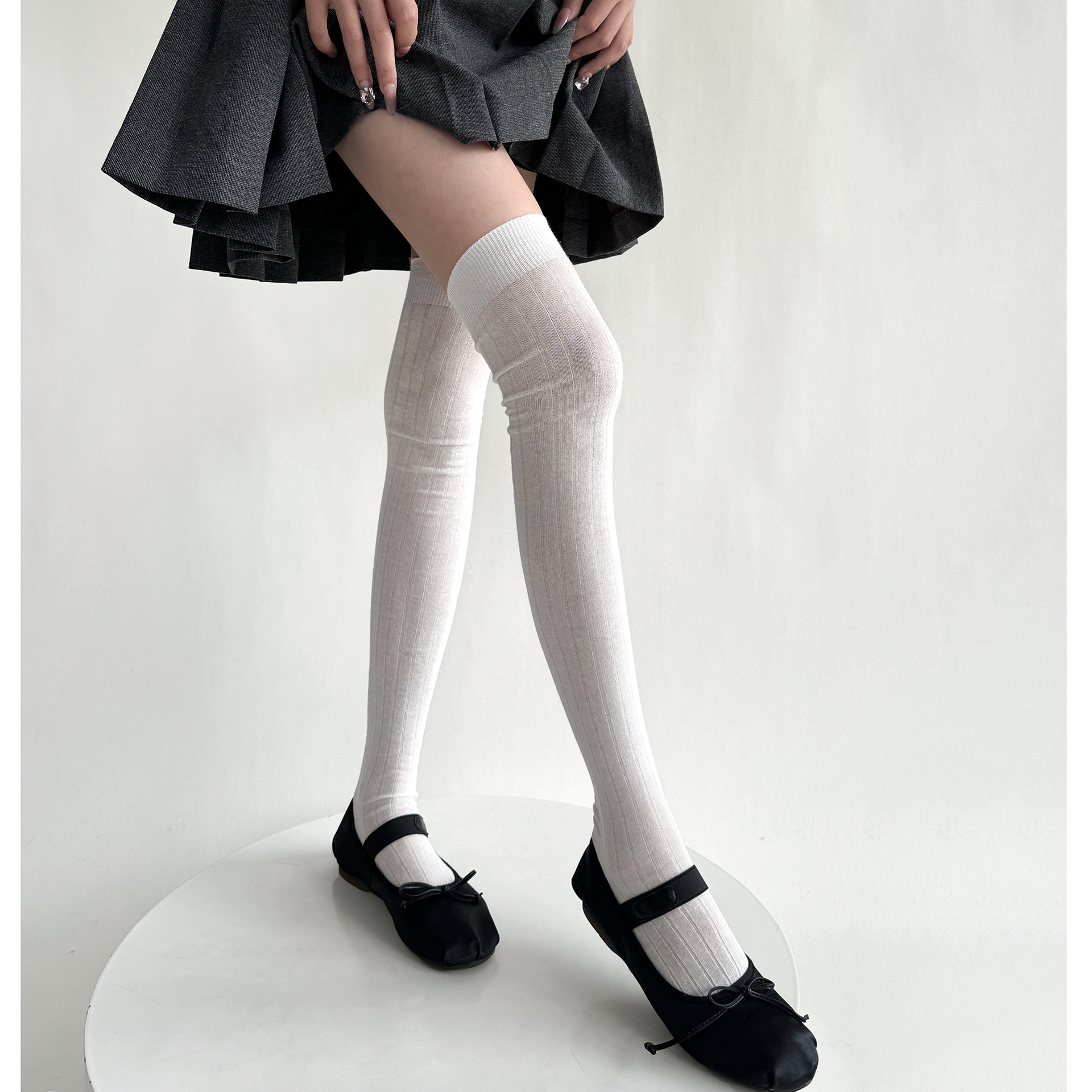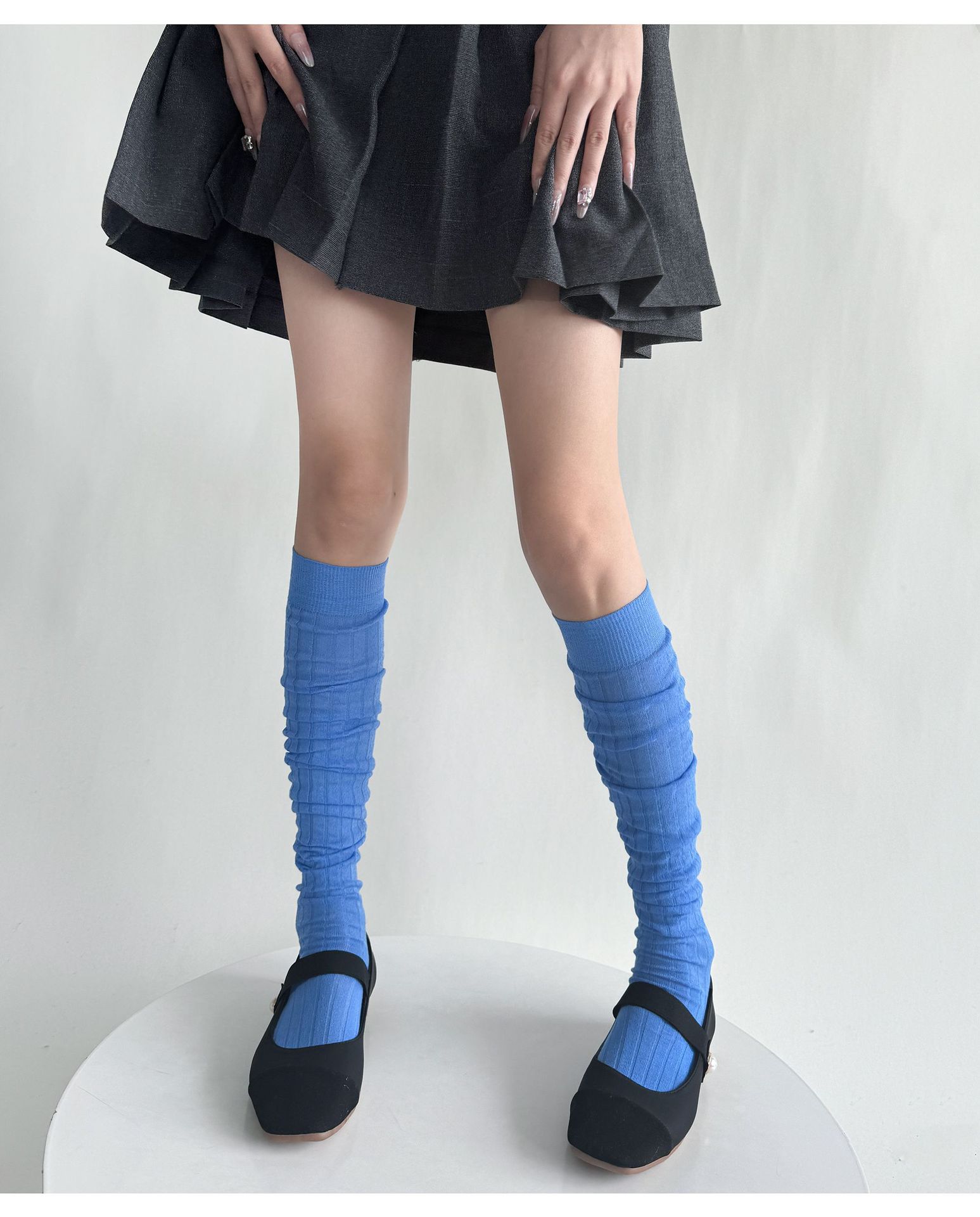 봄과 여름 얇은 면 마이크로 투명 수직 무릎 양말 여성 여름 한국식 슬리밍 높은 양말 단색 간단한 송아지 양말스토어 가기