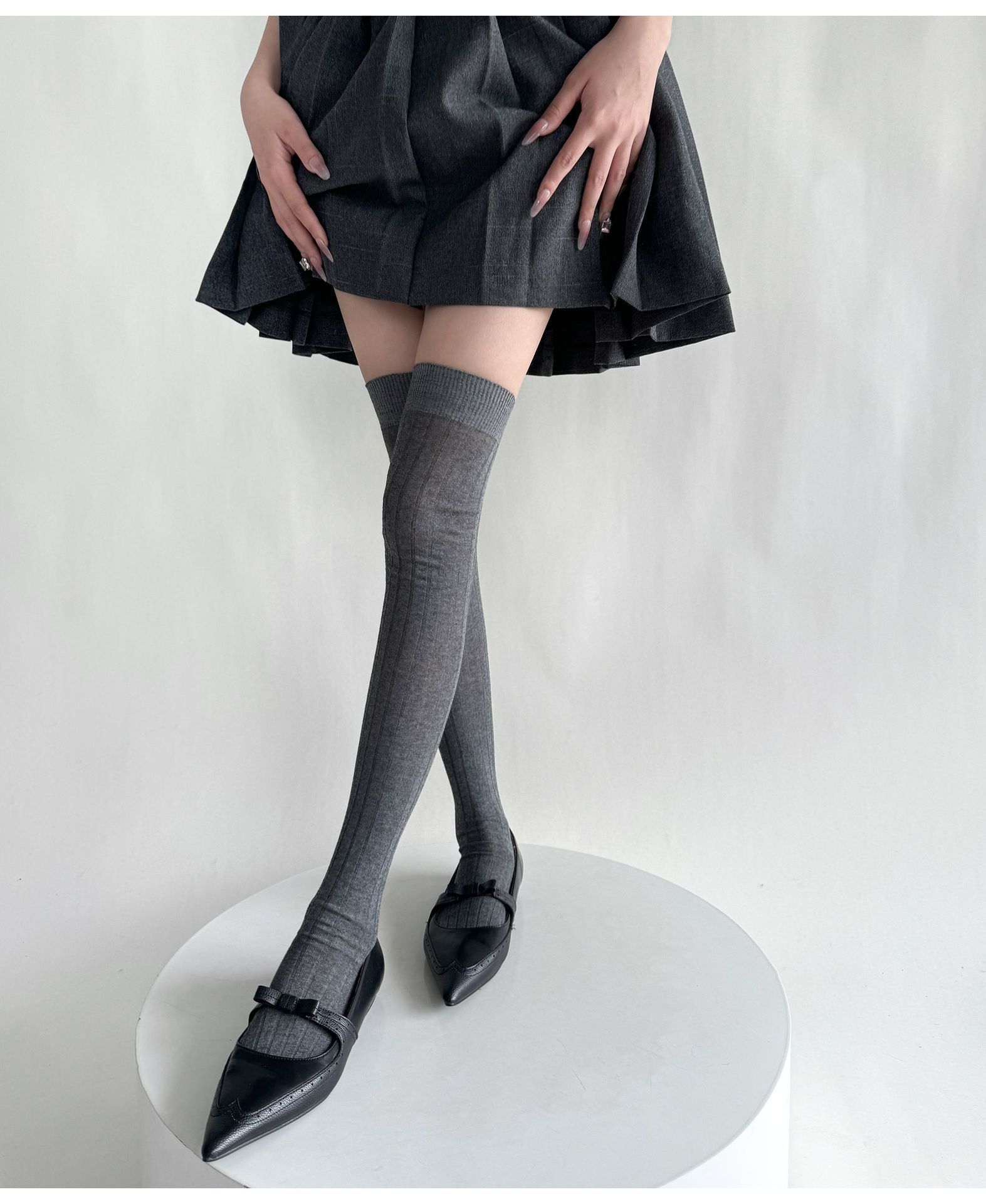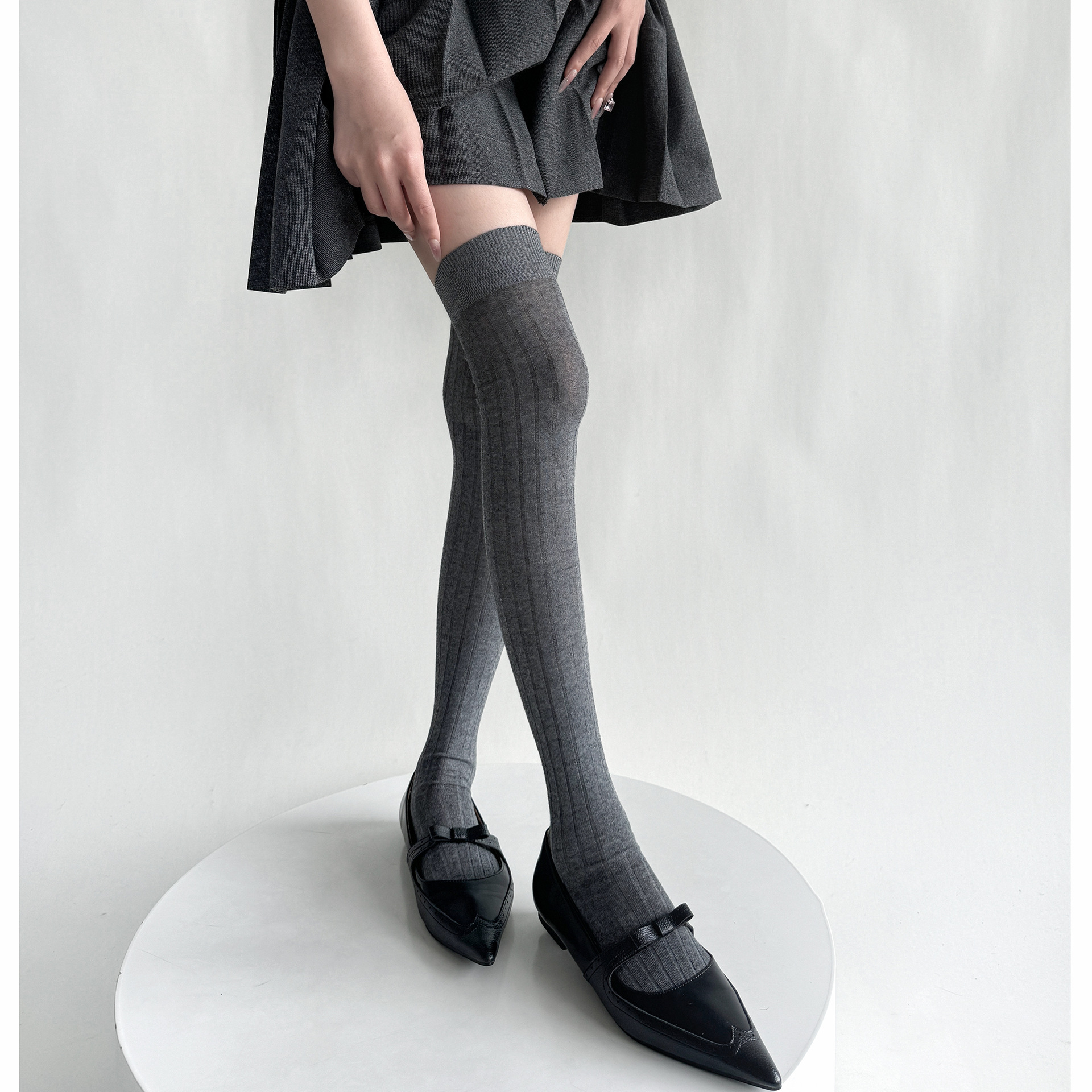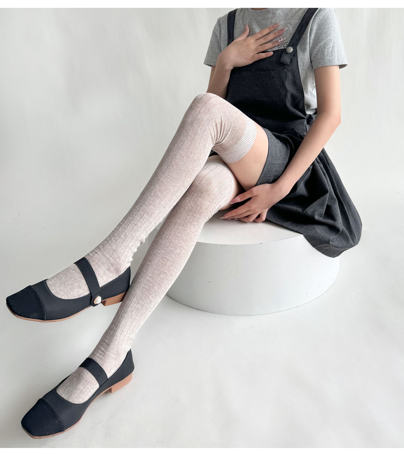 봄과 여름 얇은 면 마이크로 투명 수직 무릎 양말 여성 여름 한국식 슬리밍 높은 양말 단색 간단한 송아지 양말스토어 가기
