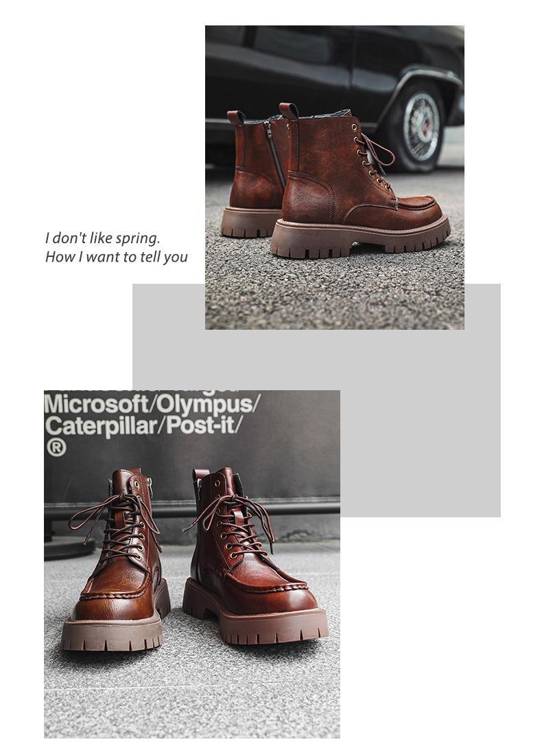 봄과 가을 남성 영국 스타일 마틴 부츠 유행 가을 및 겨울 높은 탑 툴링 가죽 부츠 사이드 지퍼 유행 패션 부츠