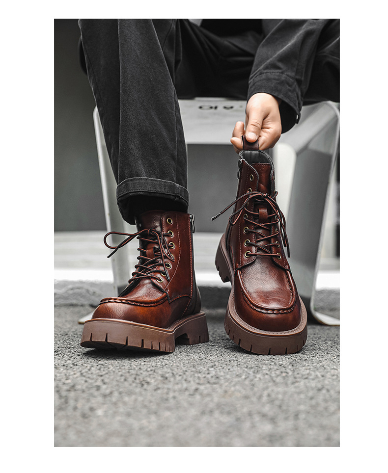 봄과 가을 남성 영국 스타일 마틴 부츠 유행 가을 및 겨울 높은 탑 툴링 가죽 부츠 사이드 지퍼 유행 패션 부츠스토어 가기