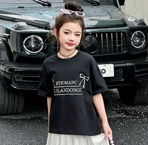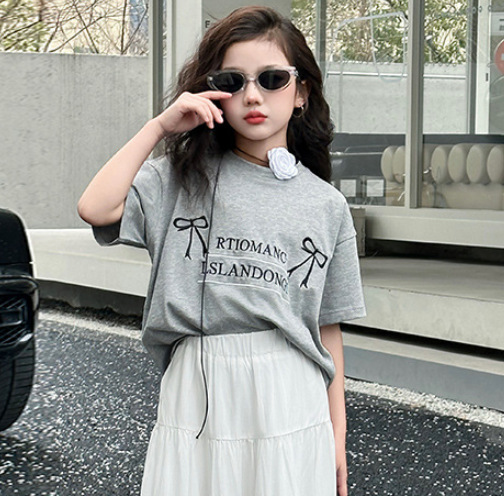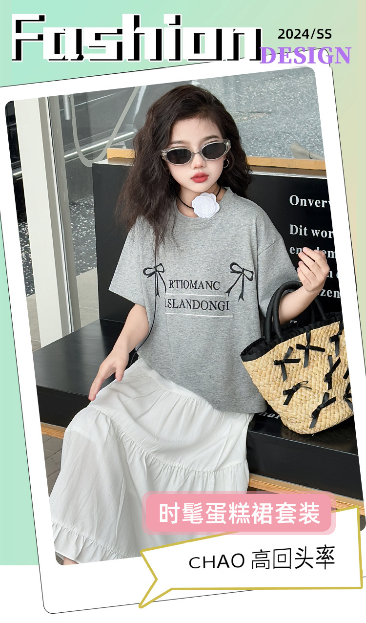 여자 여름 반소매 티셔츠 세트 어린이 여름 스커트 반소매 탑 원피스 투피스 세트스토어 가기