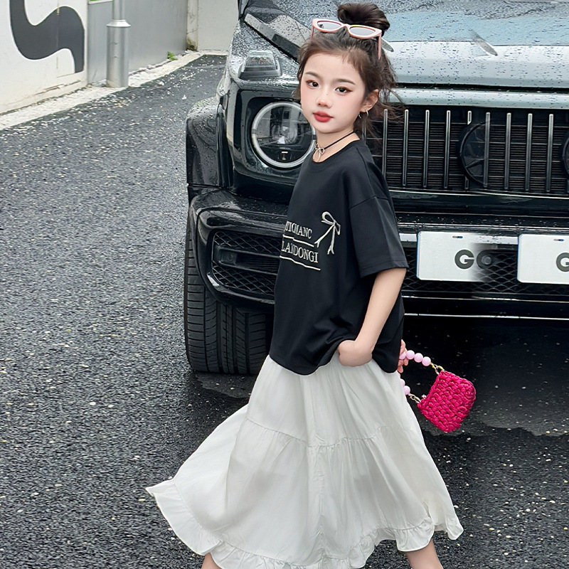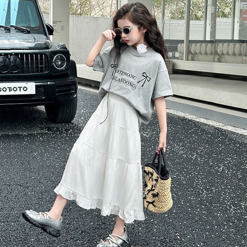 여자 여름 반소매 티셔츠 세트 어린이 여름 스커트 반소매 탑 원피스 투피스 세트
