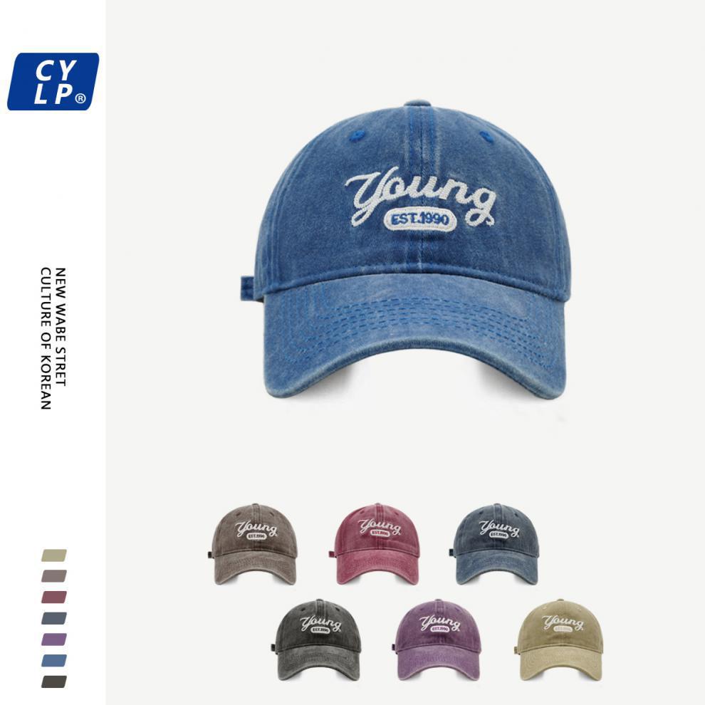 Jichu 남자와 여자의 일본인은 오래된 영어 자수 소프트 탑 야구 모자 커플 쇼핑 올 매치 빈티지 오리