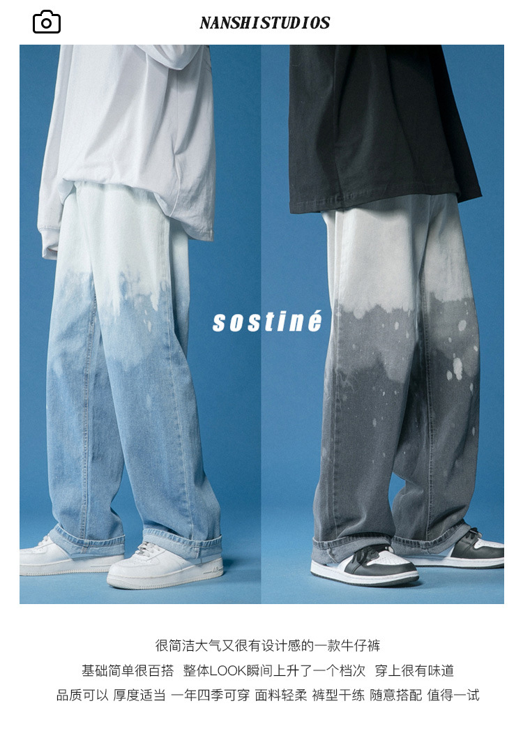 타이 다이 그라디언트 컬러 청바지 남성 여름 유행 홍콩 스타일 캐주얼 바지 한국 스타일 트렌디 브랜드 펜던트 와이드 다리 바지