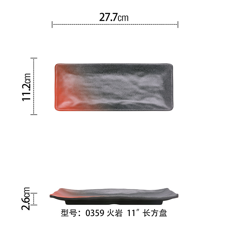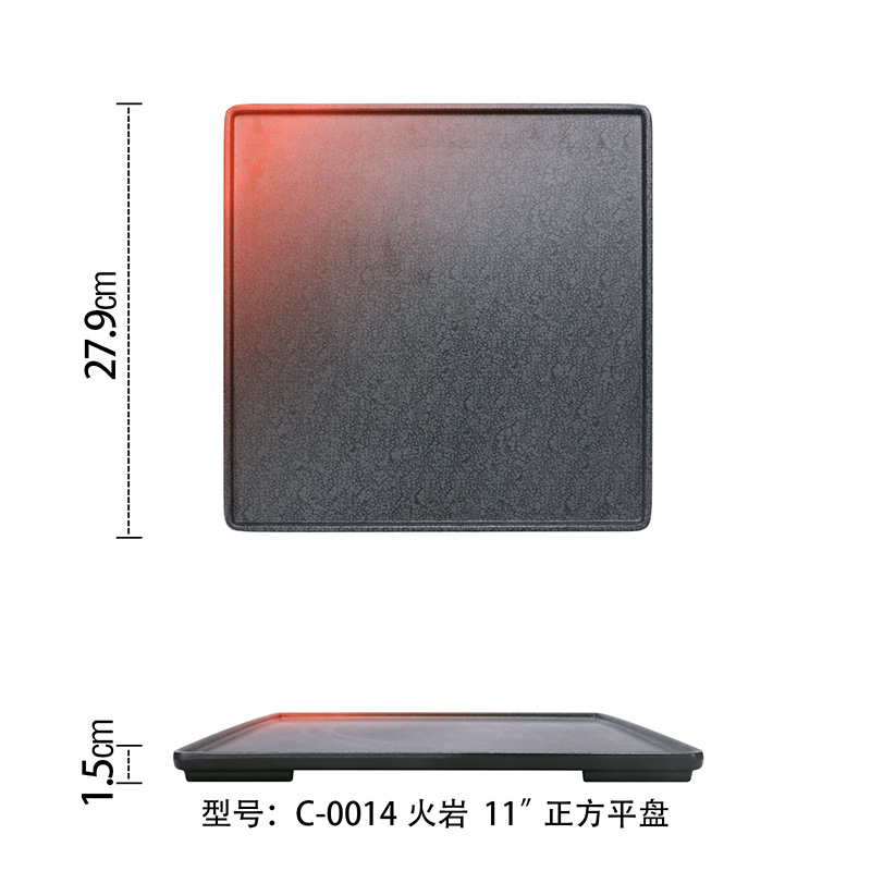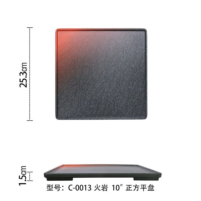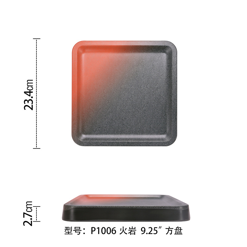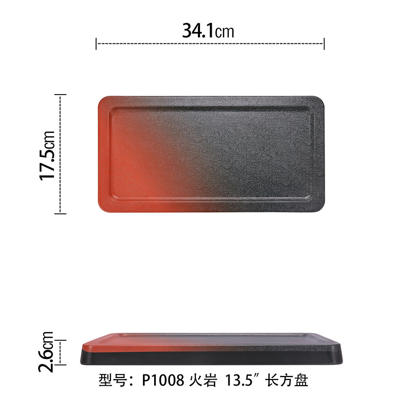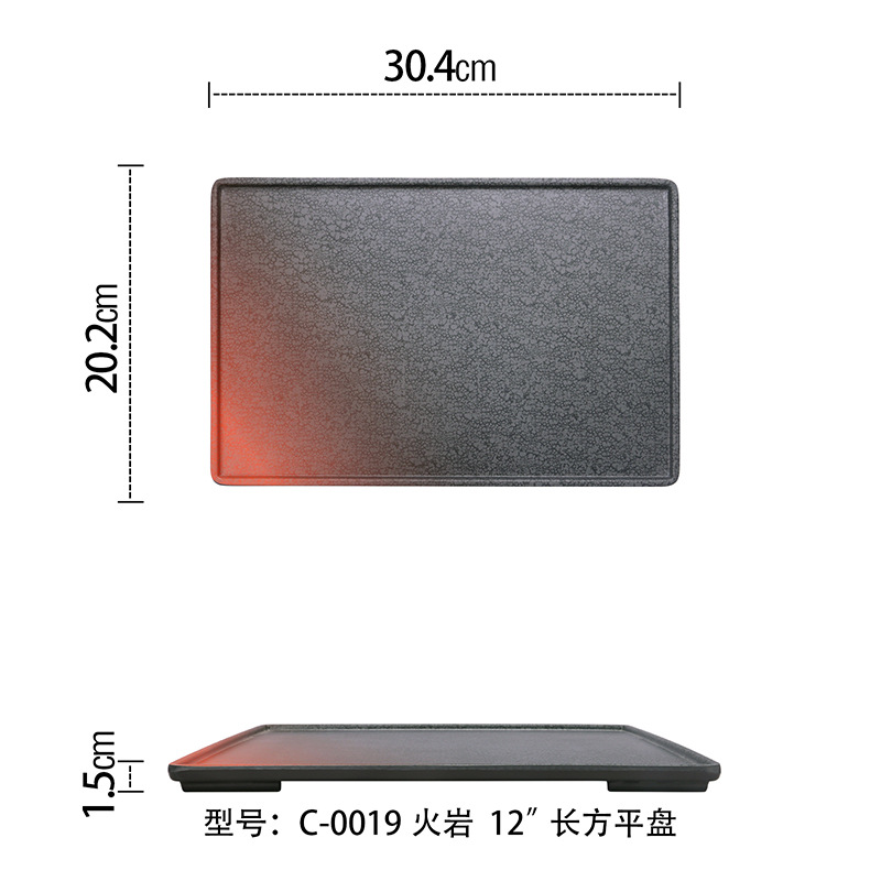화산암 멜라민 식기 블랙 바베큐 플레이트 상업용 바베큐 스퀘어 플레이트 특수 쇠고기 냄비 플랫 플레이트