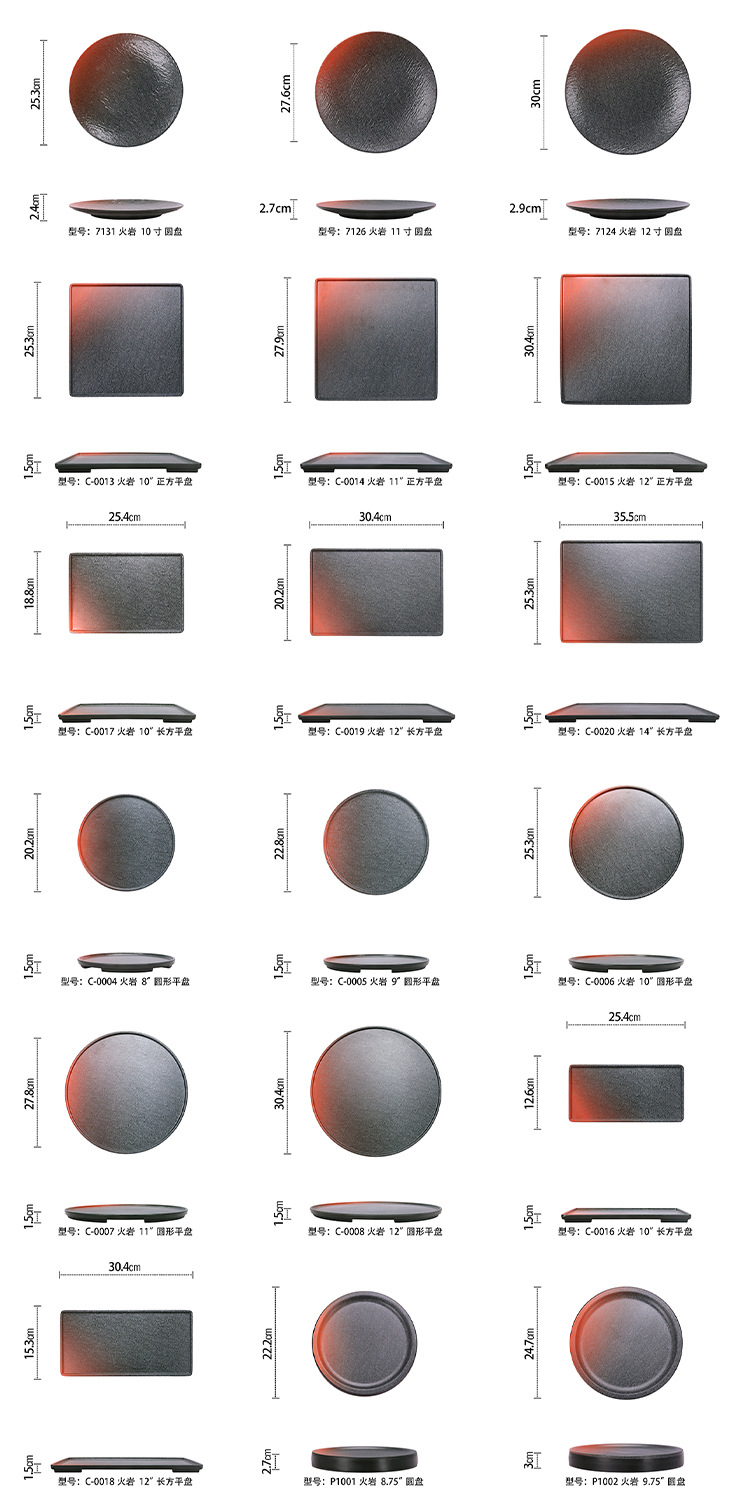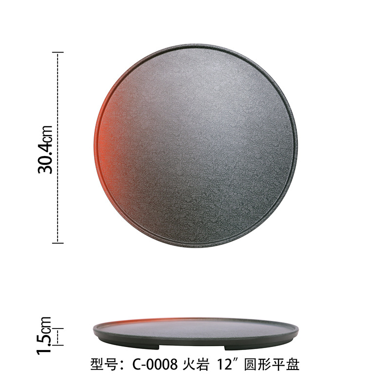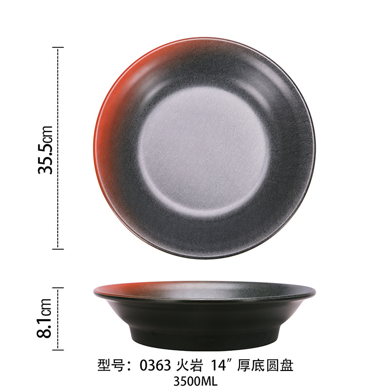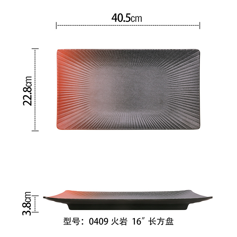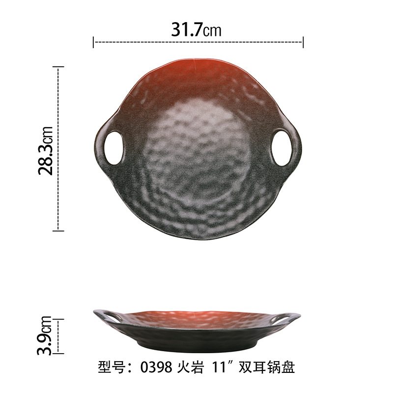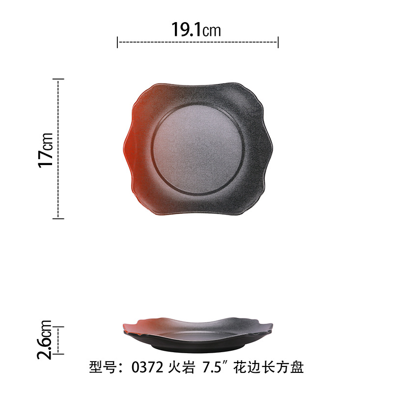 화산암 멜라민 식기 블랙 바베큐 플레이트 상업용 바베큐 스퀘어 플레이트 특수 쇠고기 냄비 플랫 플레이트