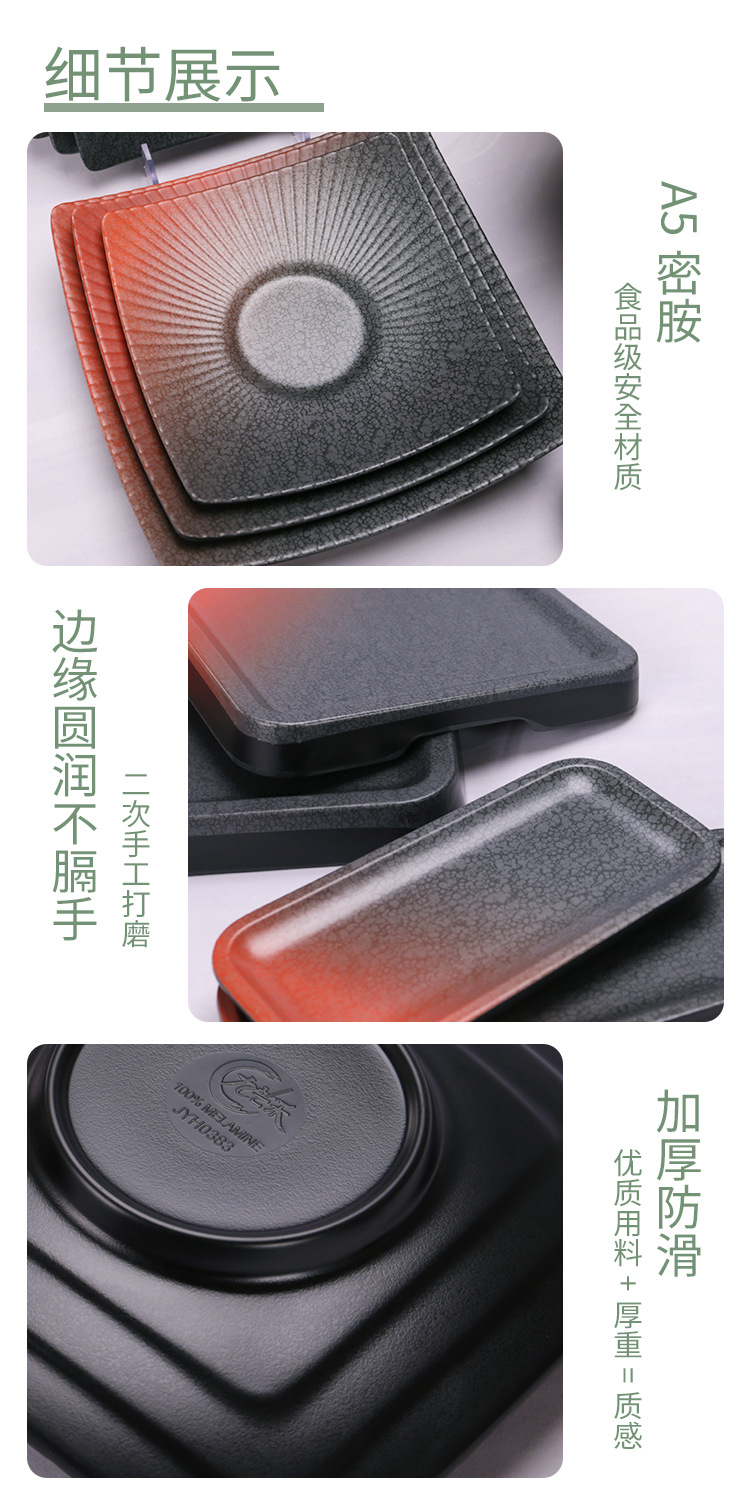 화산암 멜라민 식기 블랙 바베큐 플레이트 상업용 바베큐 스퀘어 플레이트 특수 쇠고기 냄비 플랫 플레이트스토어 가기