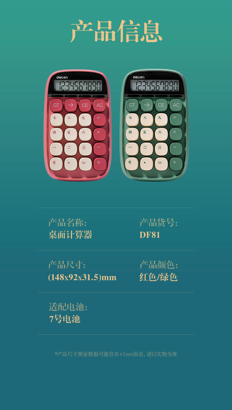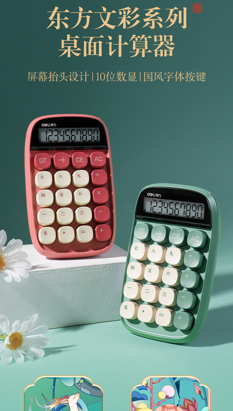 델리 DF81 오리엔탈 컬러 데스크탑 계산기 사무실 금융 학생 전용 어린이 남성과 여성 높은 색상 가치