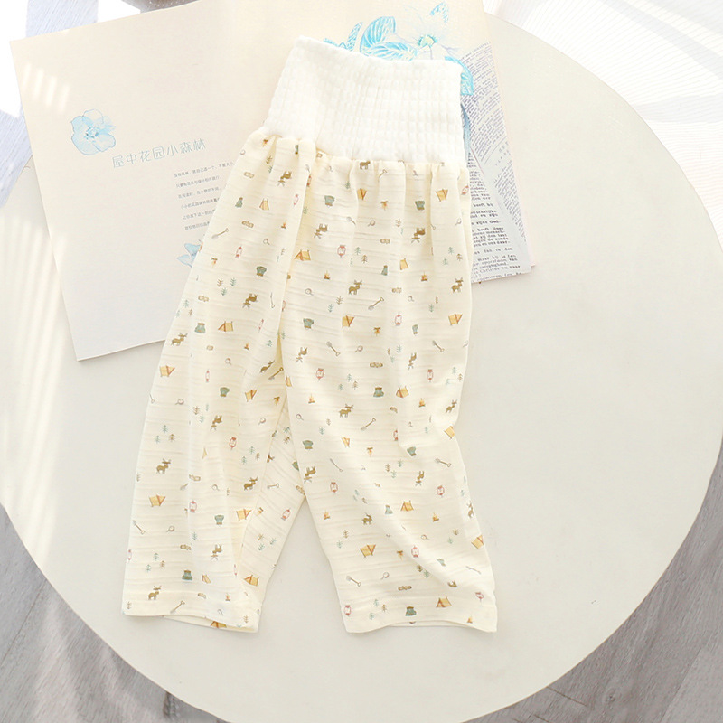 여름 얇은 일본 어린이 모기 방지 바지 순면 A 형 생일 도시 대나무 면화 아기 9 점 배꼽 보호 하이 웨이스트 바지