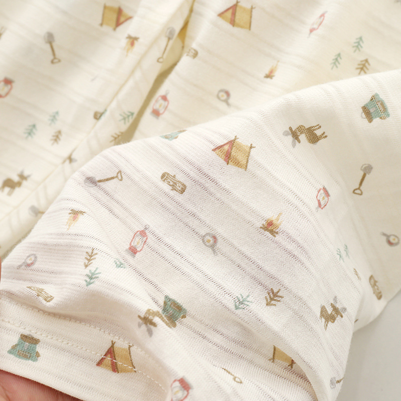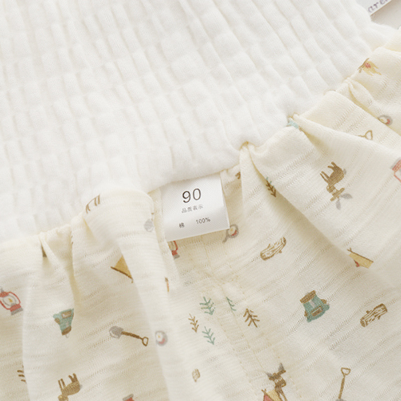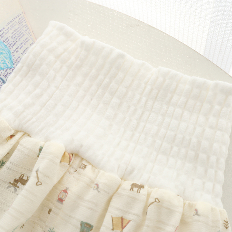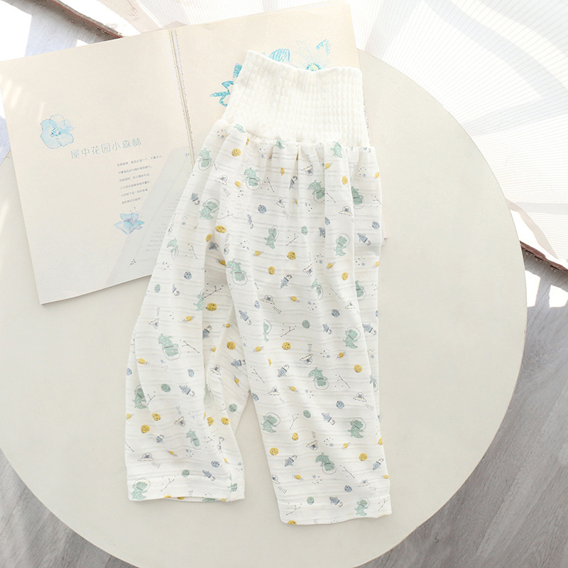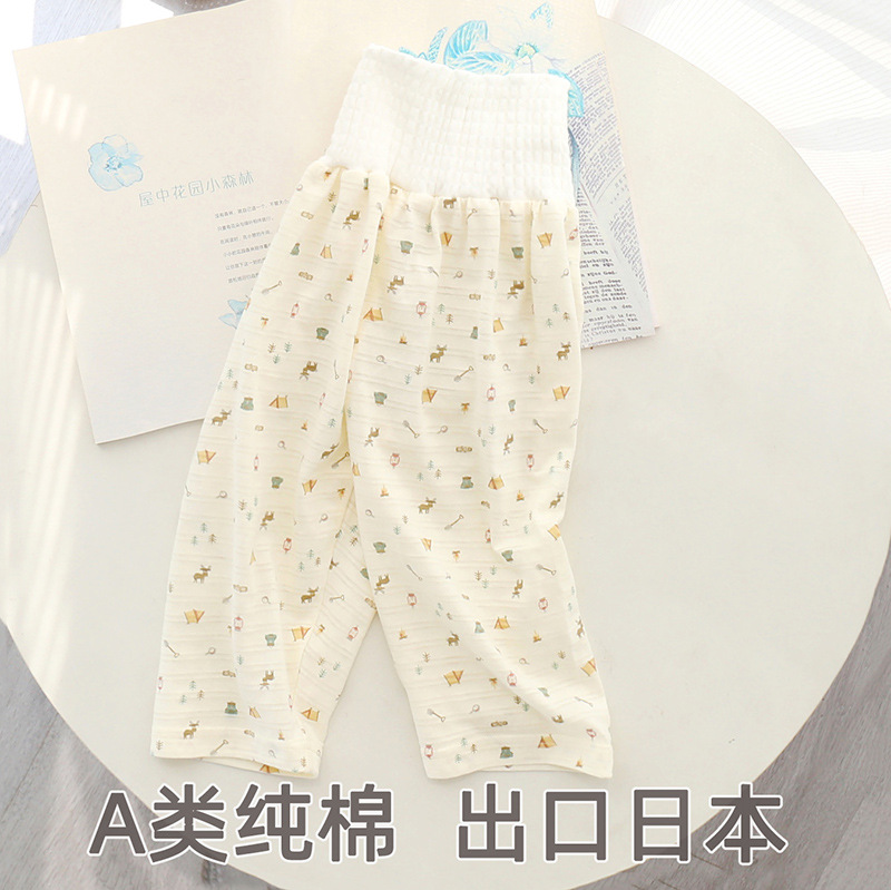 여름 얇은 일본 어린이 모기 방지 바지 순면 A 형 생일 도시 대나무 면화 아기 9 점 배꼽 보호 하이 웨이스트 바지스토어 가기