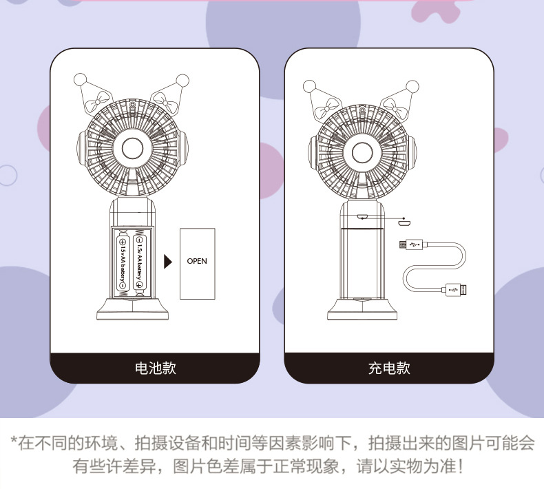 새로운 만화 휴대용 데스크탑 배터리 1 충전식 2 작은 팬 학생 휴대용 전기 팬 선물 제조 업체