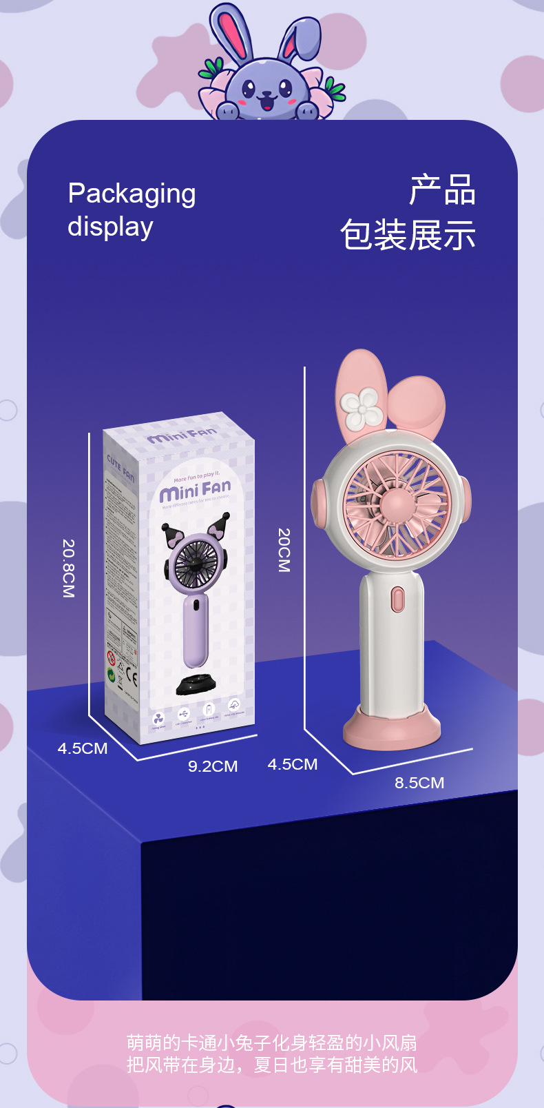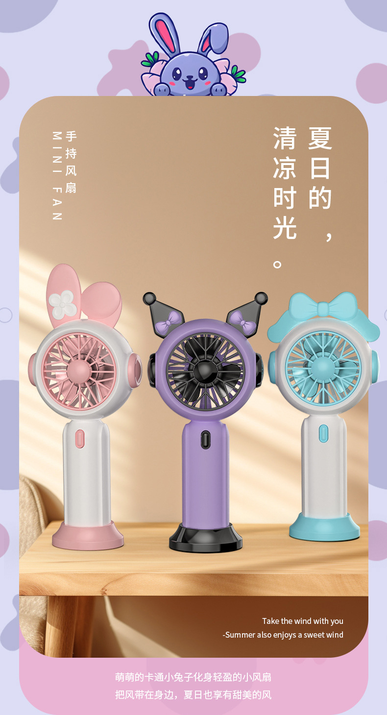 새로운 만화 휴대용 데스크탑 배터리 1 충전식 2 작은 팬 학생 휴대용 전기 팬 선물 제조 업체스토어 가기