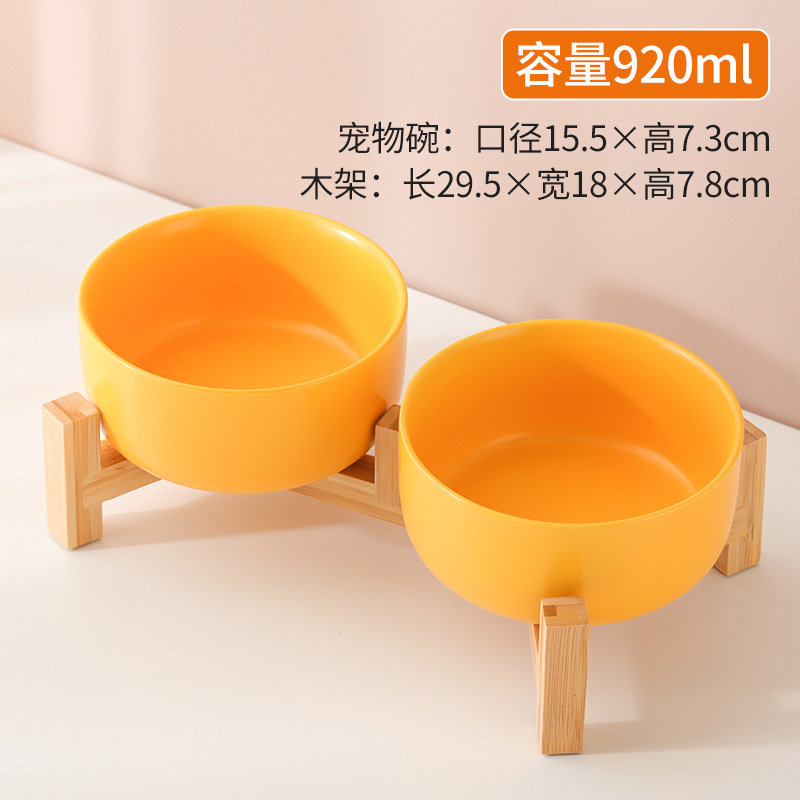 • 무광택 노란색 더블 그릇 더블 나무 프레임