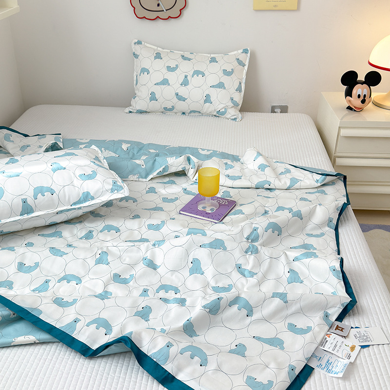 A급 산모 및 유아용 60수 장섬유 순면 여름 이불 만화 귀여운 에어컨 이불 봄 가을 얇은 이불