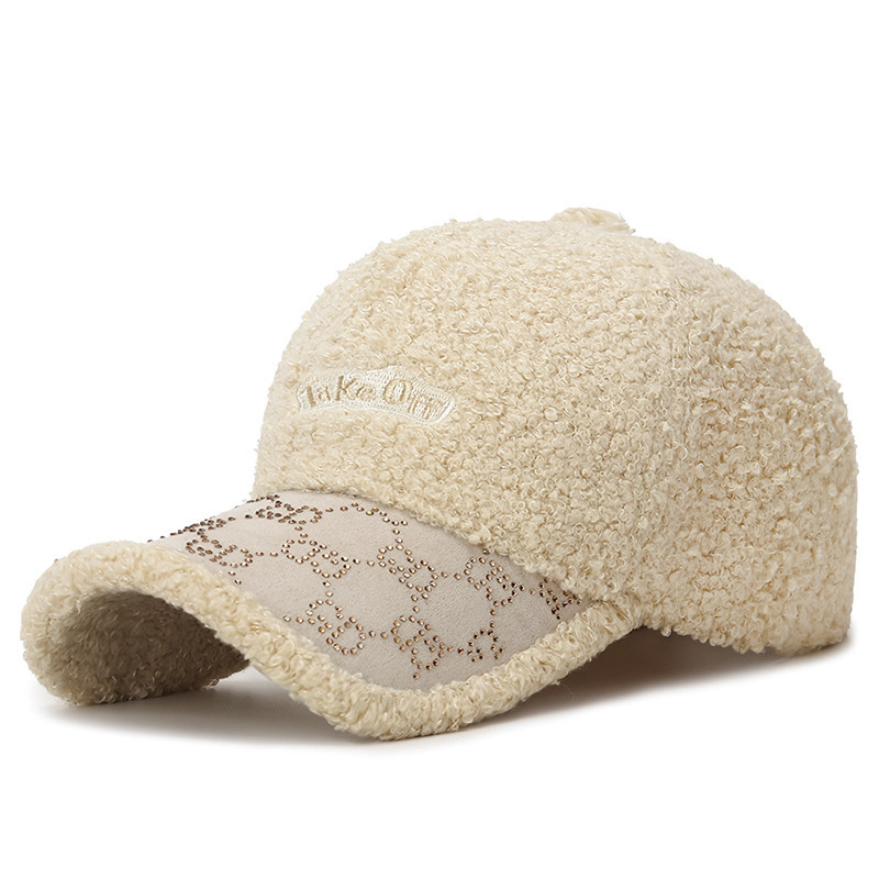 이른 겨울 여자 한국식 작은 자수 편지 야구 모자 두꺼운 캐주얼 올매치 라인스톤 테디 덕 혀