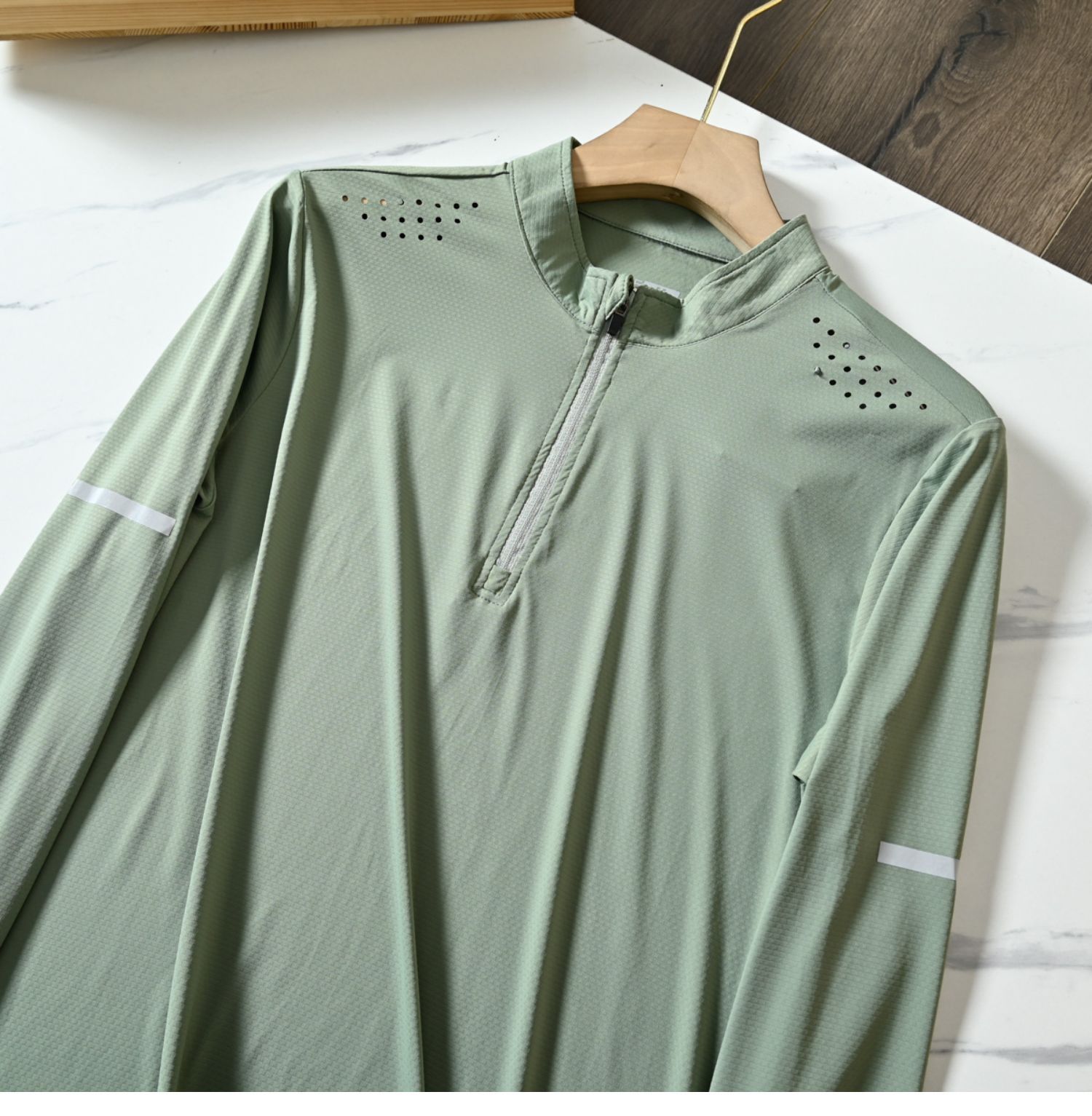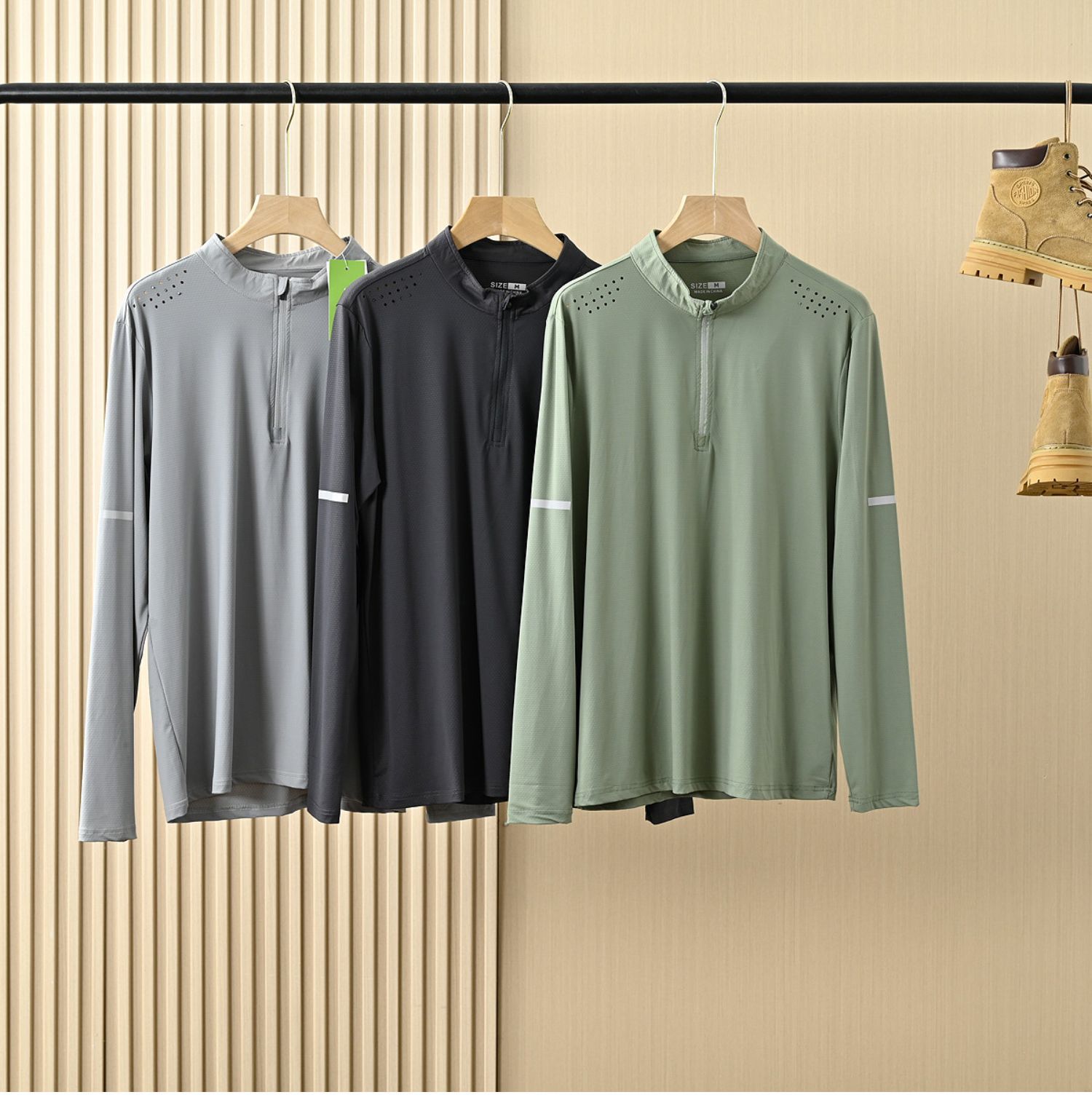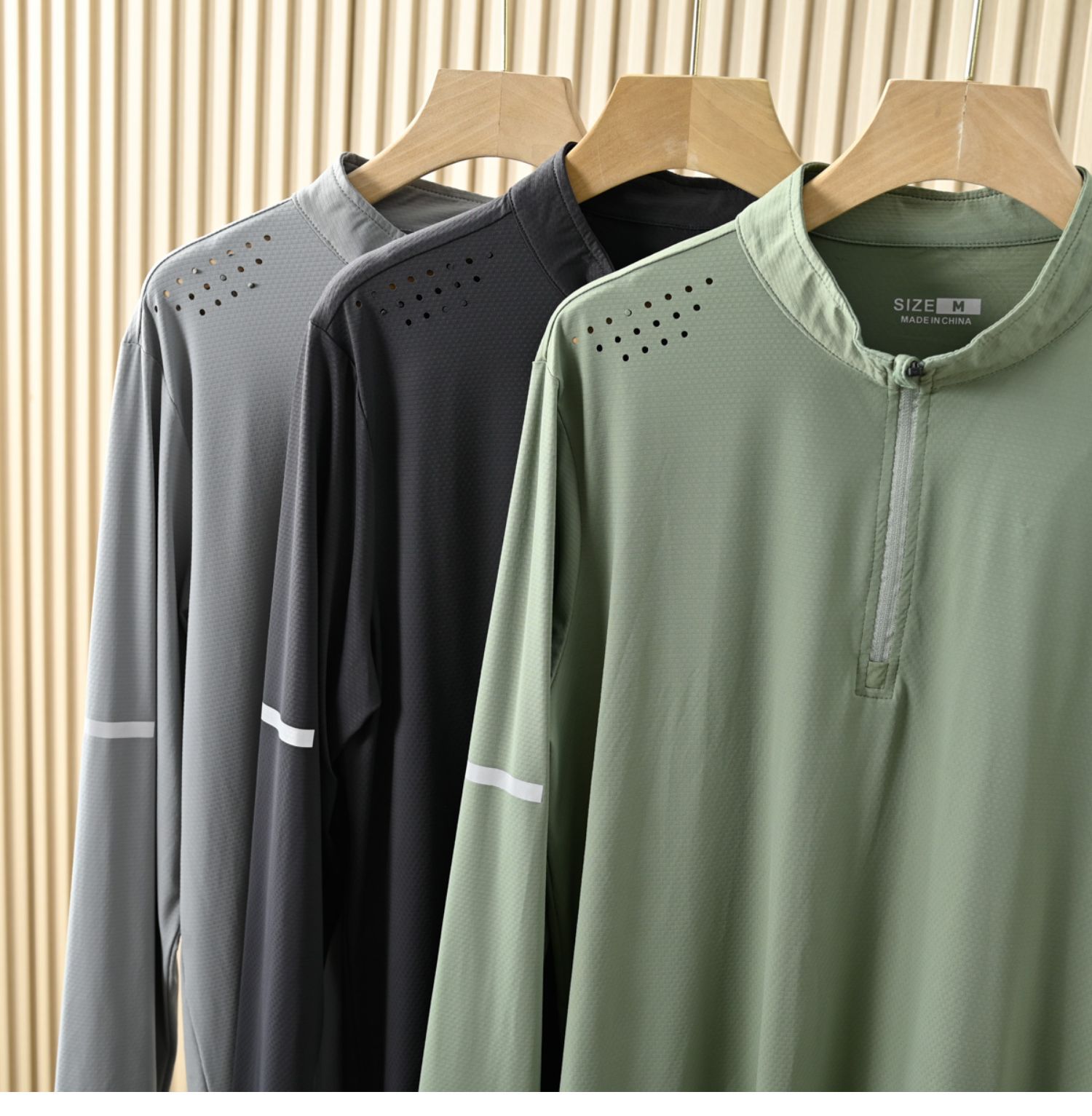 Tangdi와 같은 스타일! 어깨 레이저 구멍 통기성 속건성 고탄성 봄 여름 남성 스탠드 칼라 하프 지퍼 긴팔 티셔츠