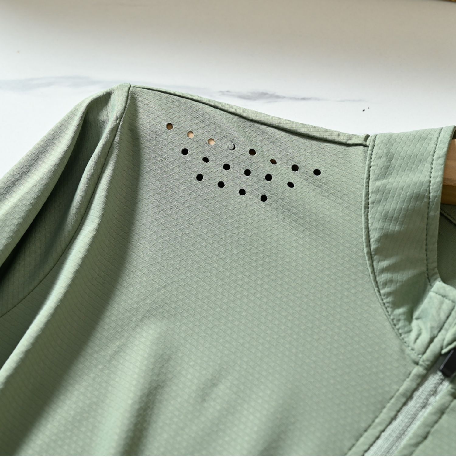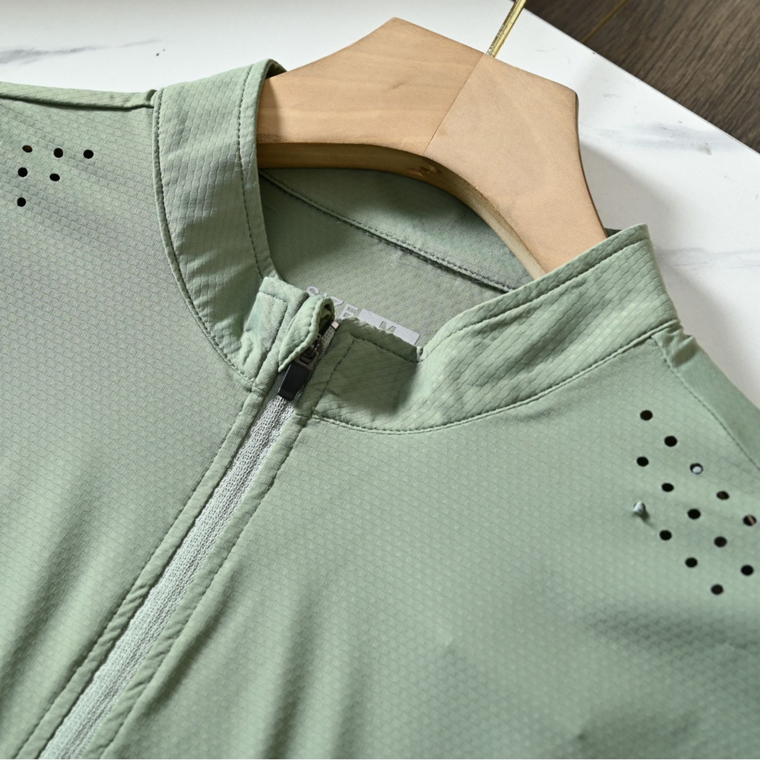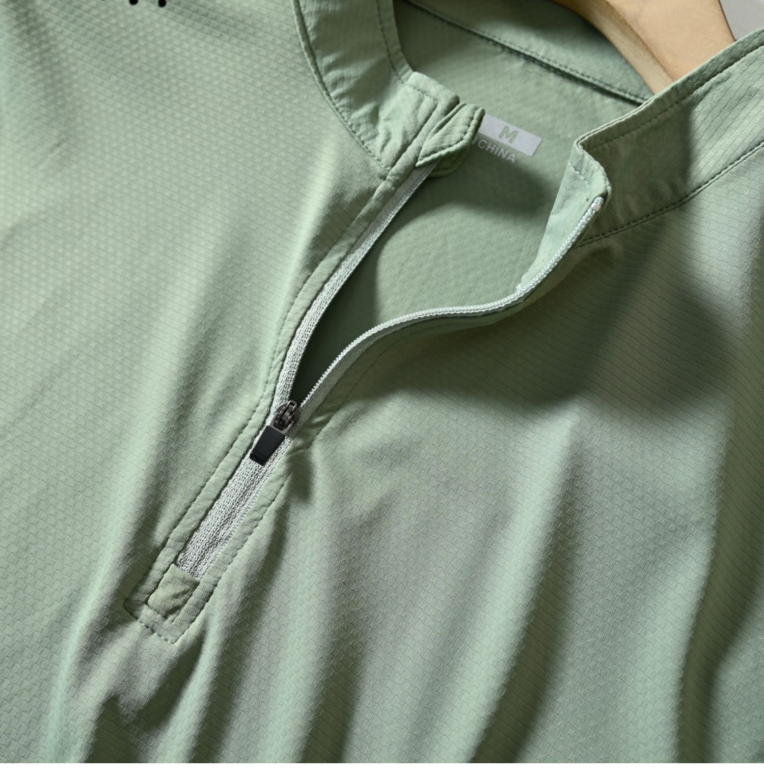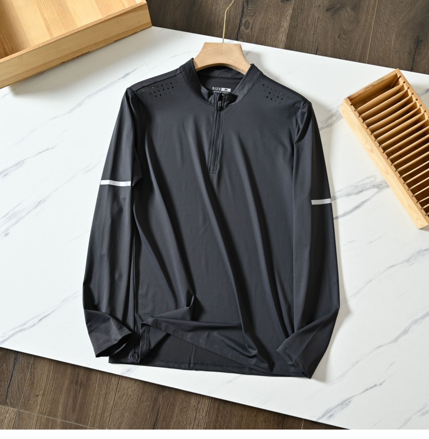 Tangdi와 같은 스타일! 어깨 레이저 구멍 통기성 속건성 고탄성 봄 여름 남성 스탠드 칼라 하프 지퍼 긴팔 티셔츠