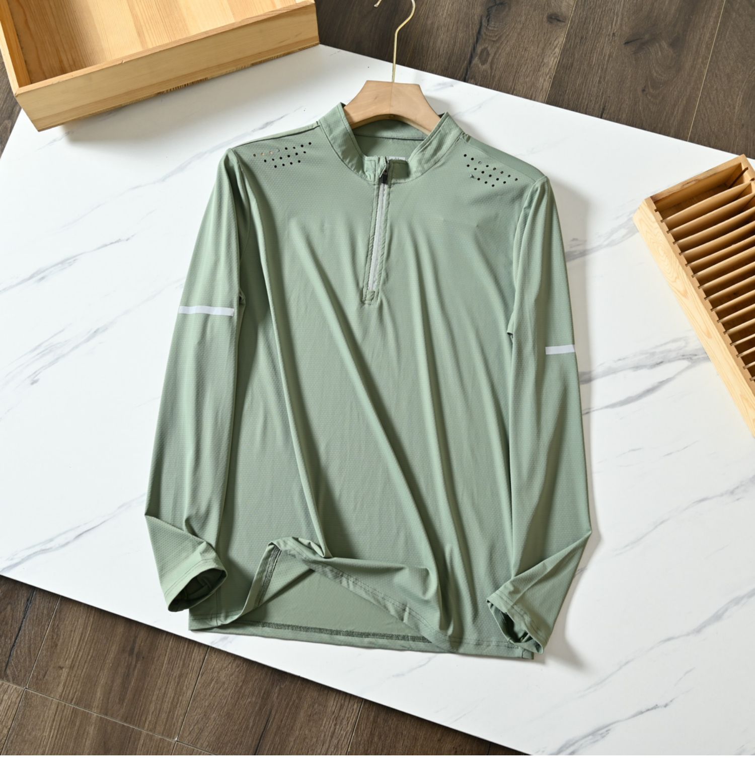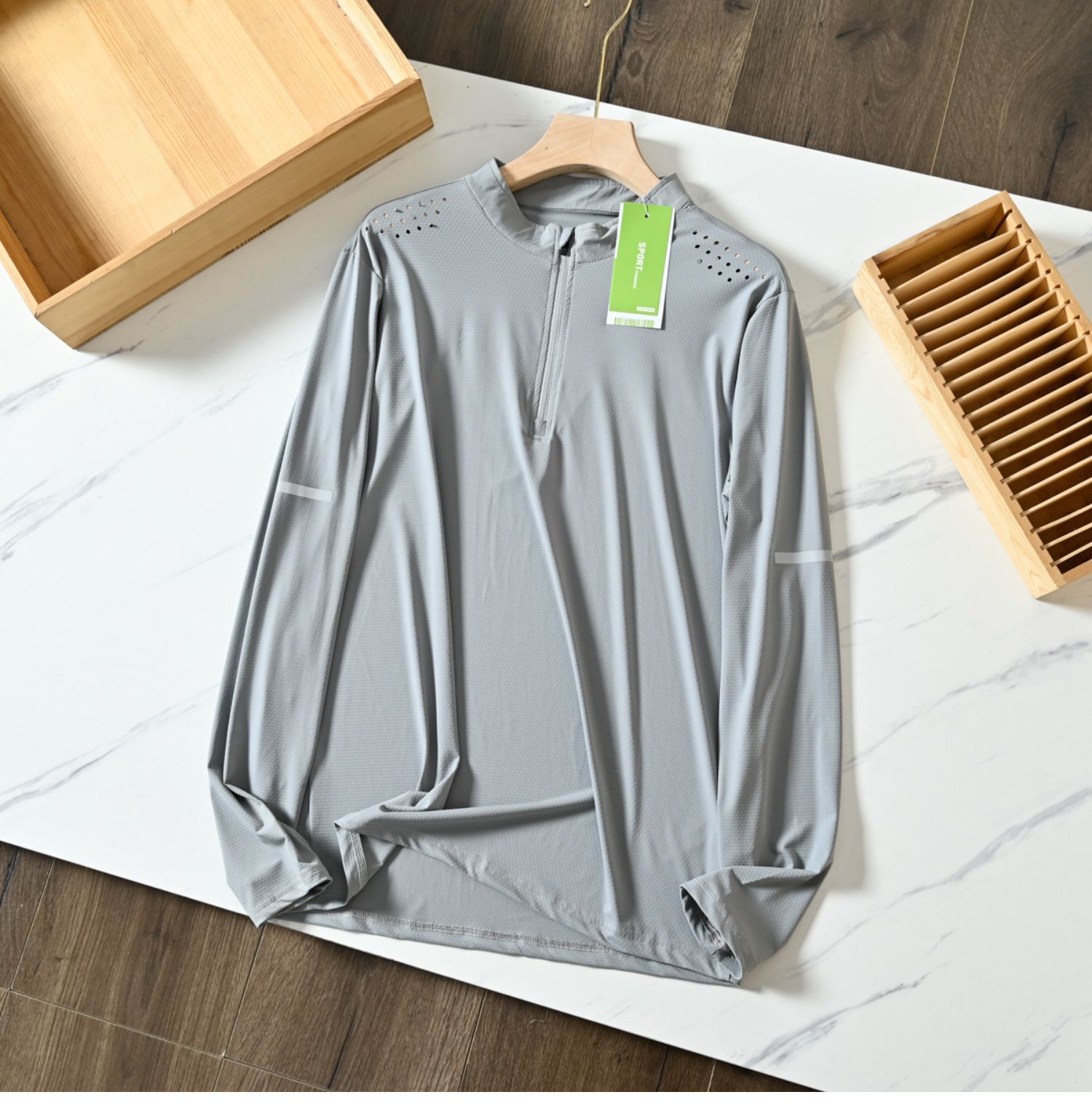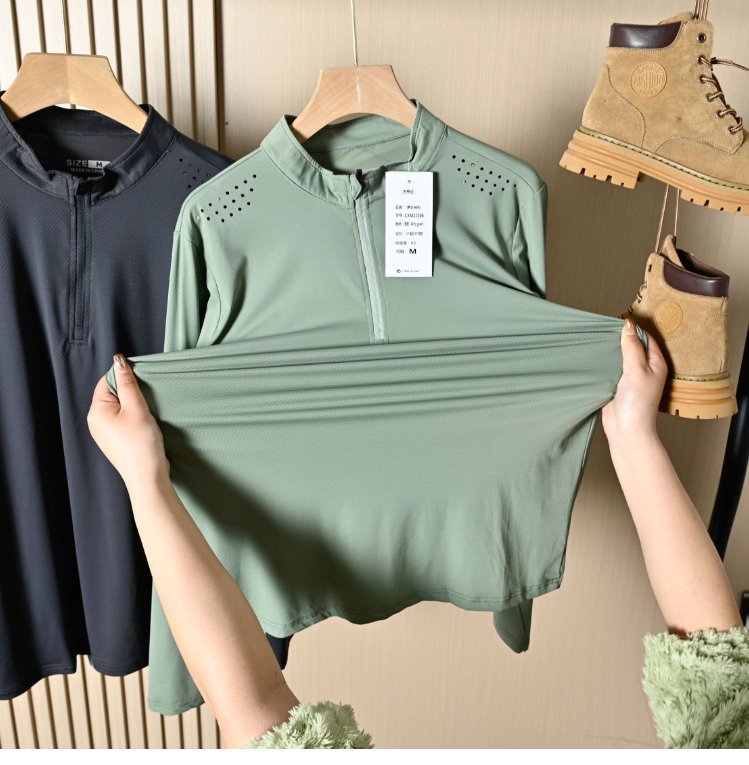 Tangdi와 같은 스타일! 어깨 레이저 구멍 통기성 속건성 고탄성 봄 여름 남성 스탠드 칼라 하프 지퍼 긴팔 티셔츠스토어 가기