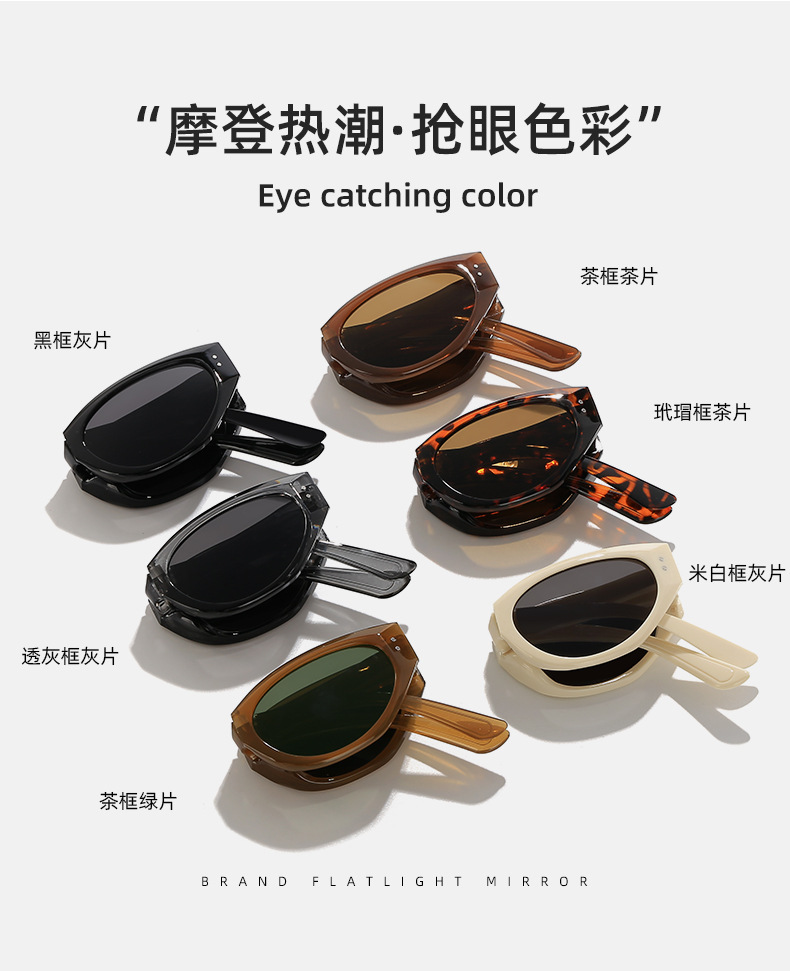 2024 새로운 초경량 접이식 복고풍 캣아이 선글라스 여성용 선글라스 야외 자외선 차단 및 얼굴을 더 작아 보이게 하는 안경스토어 가기