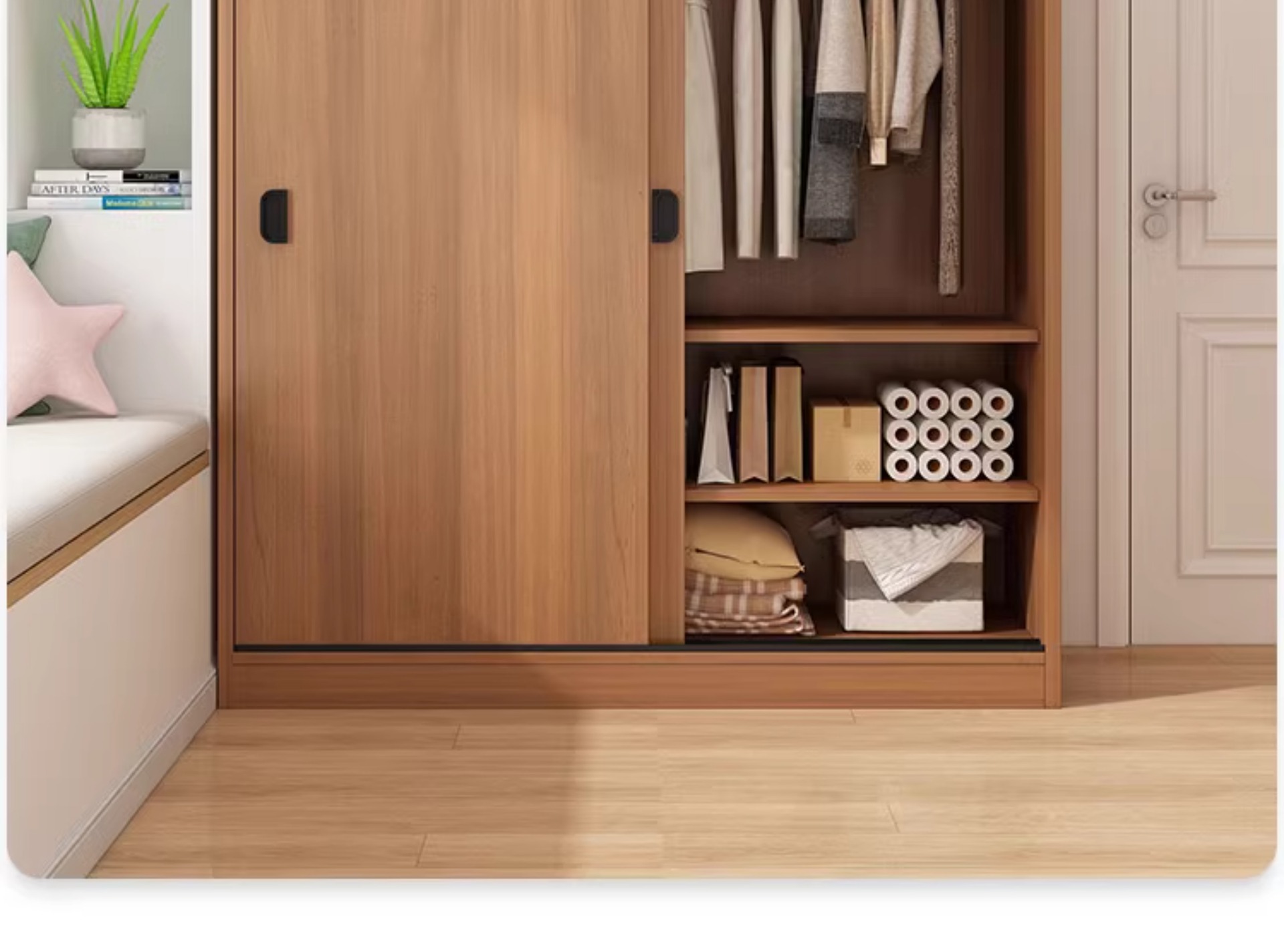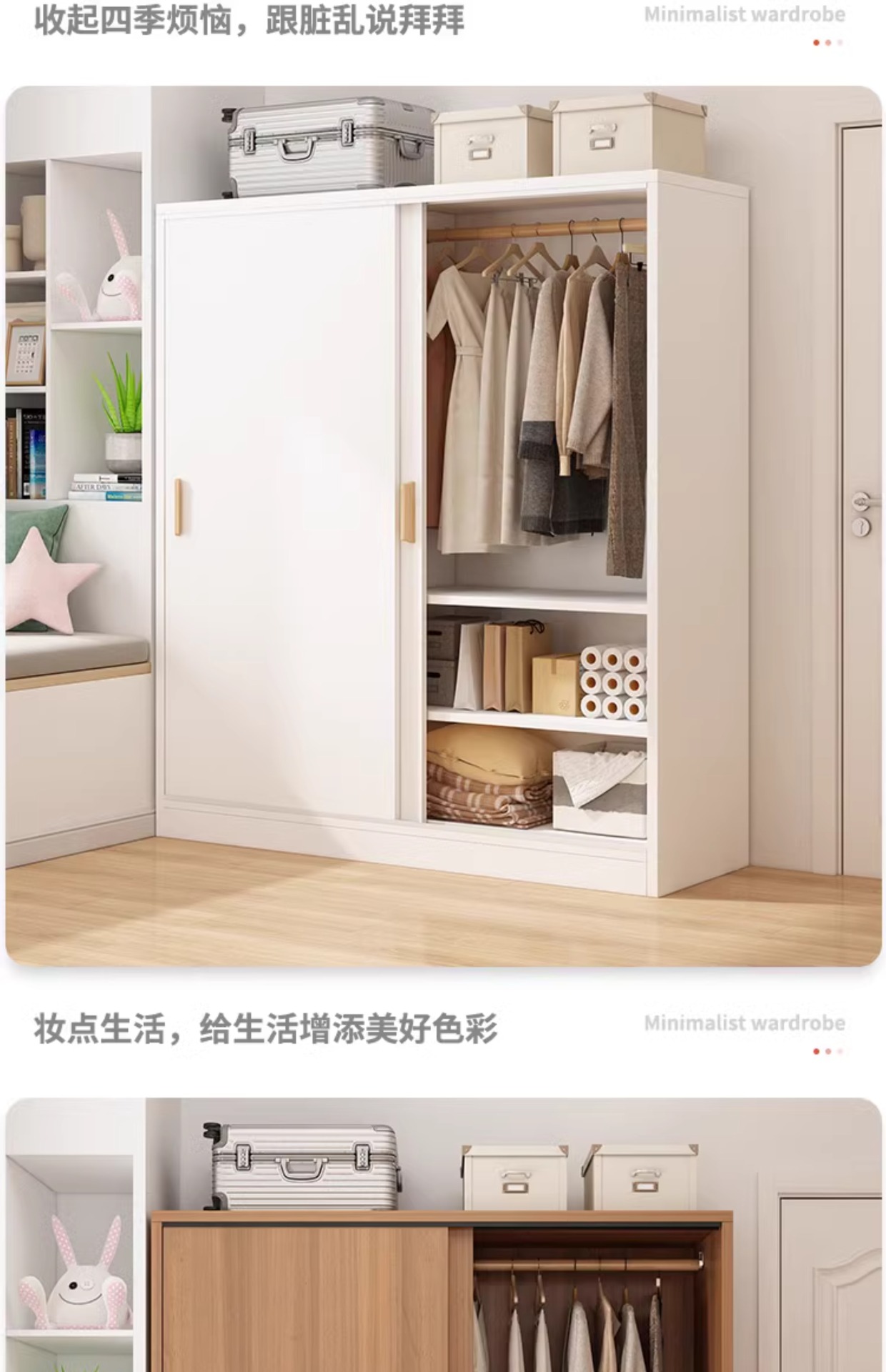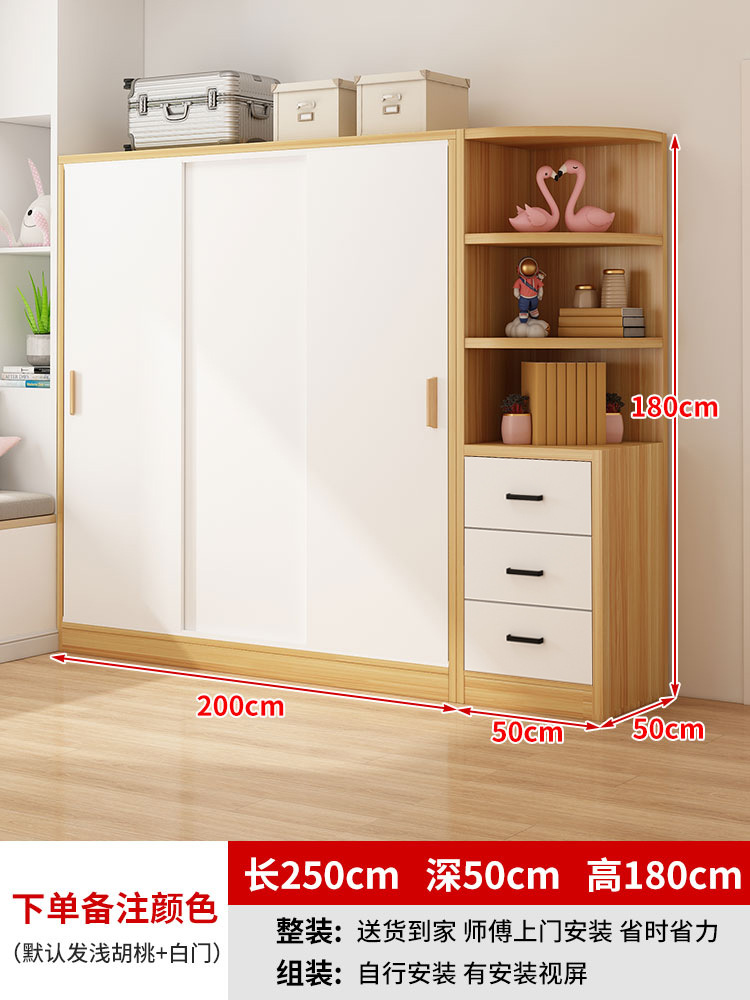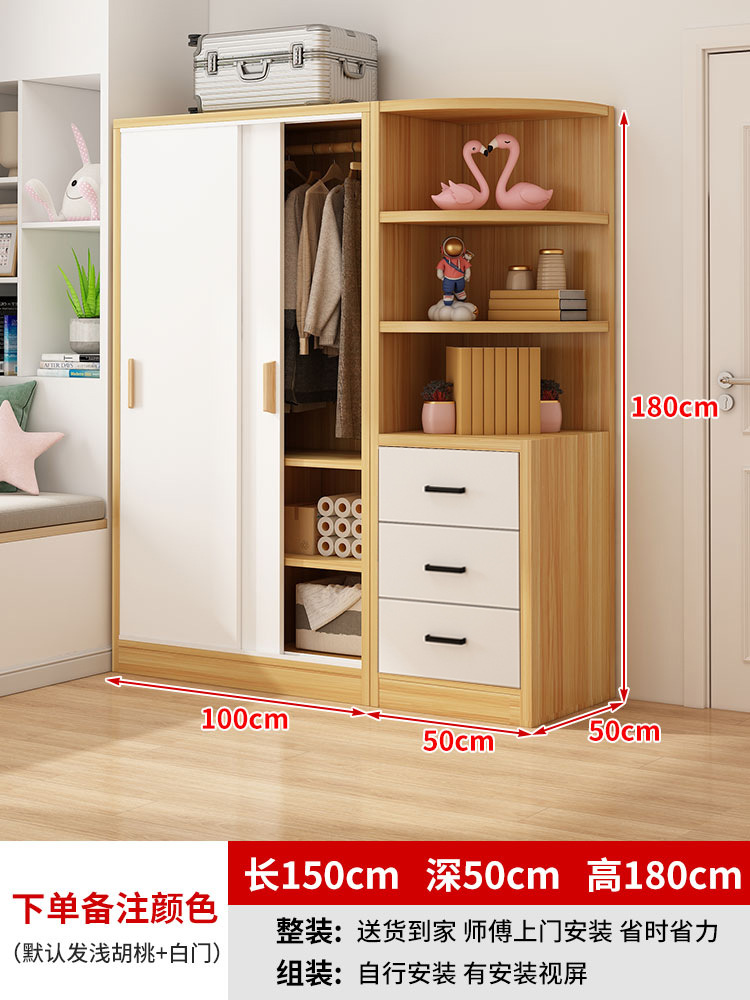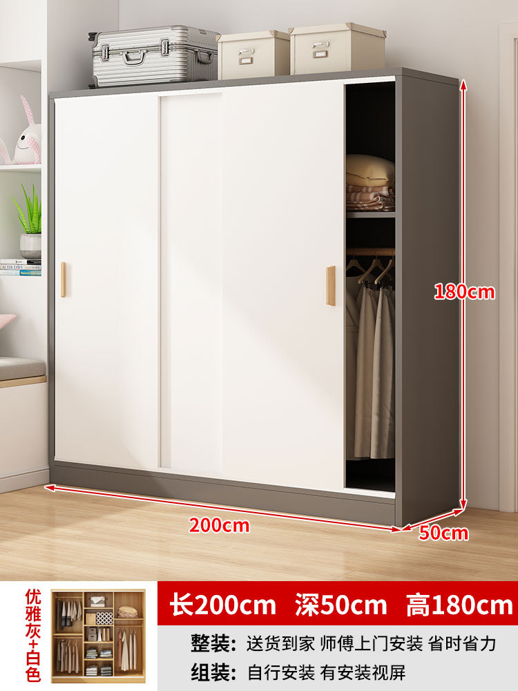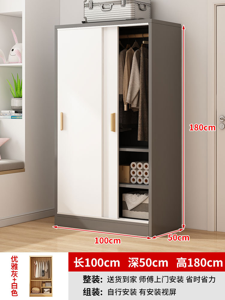 간단한 옷장 홈 침실 작은 아파트 조립 로커 임대 주택 새 스타일 슬라이딩 도어가있는 두꺼운 옷장스토어 가기