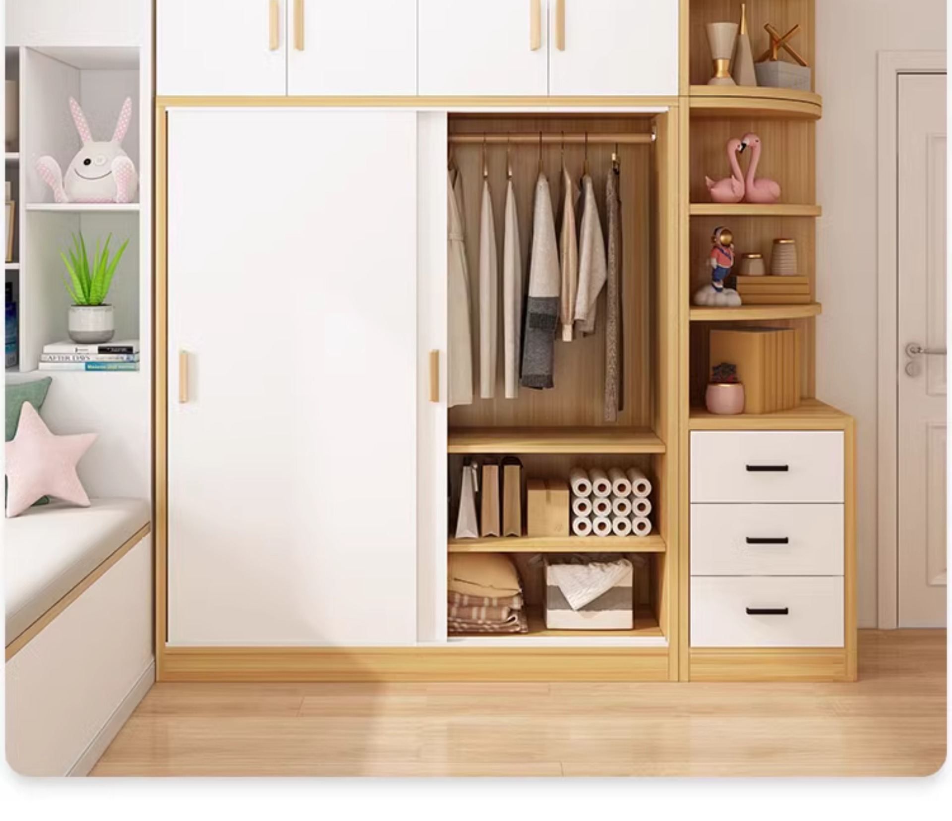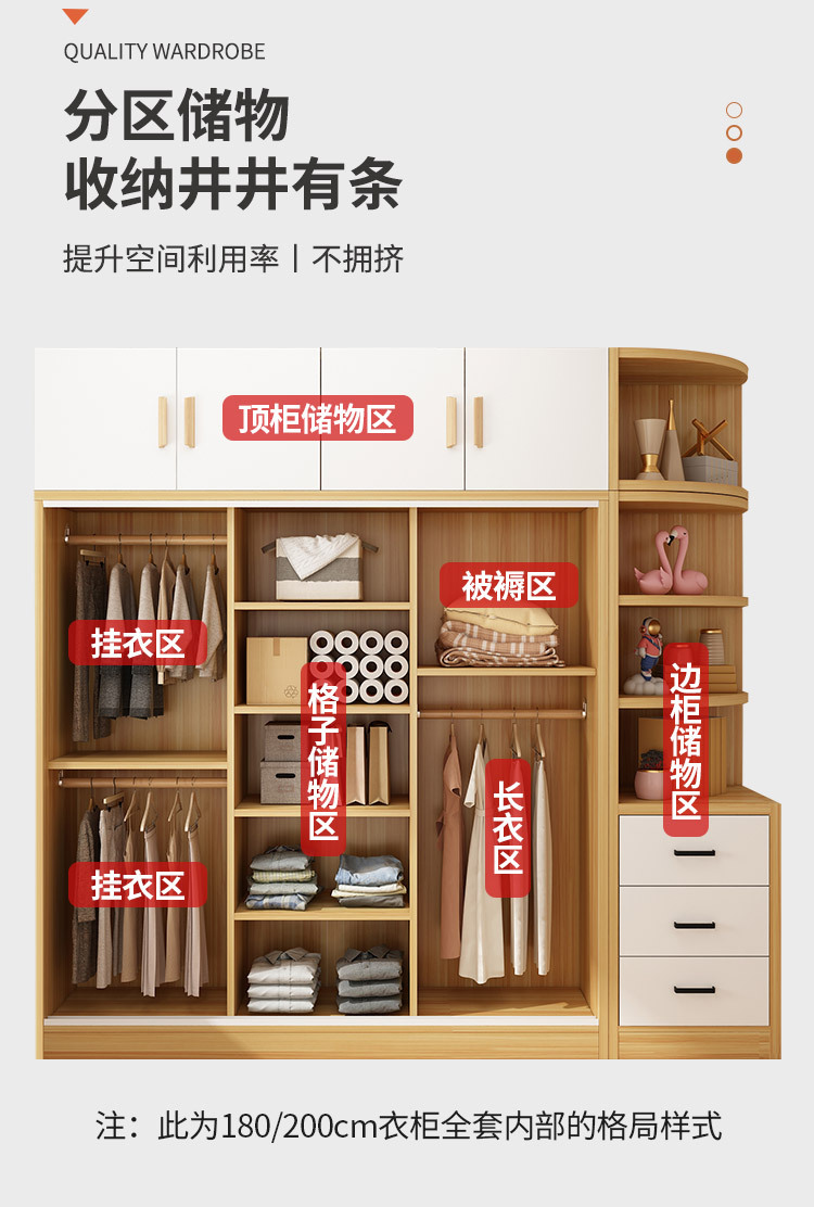 간단한 옷장 홈 침실 작은 아파트 조립 로커 임대 주택 새 스타일 슬라이딩 도어가있는 두꺼운 옷장
