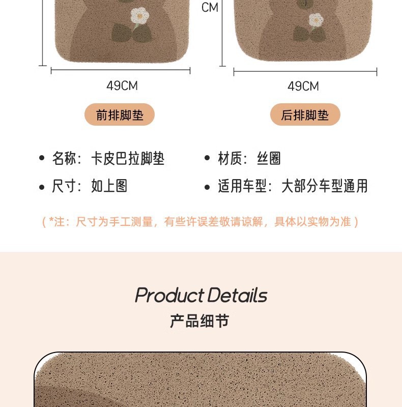 새로운 카피발라 자동차 바닥 매트 귀여운 실링크 방오 매트 내마모성 매트 장식용 운전석용 세척이 쉬운 매트스토어 가기
