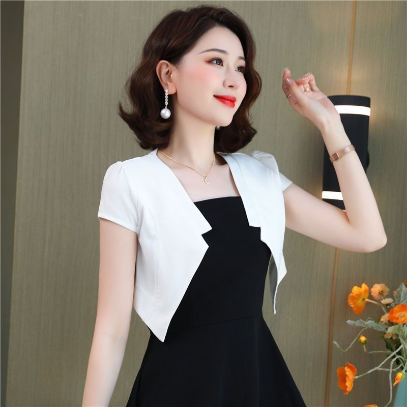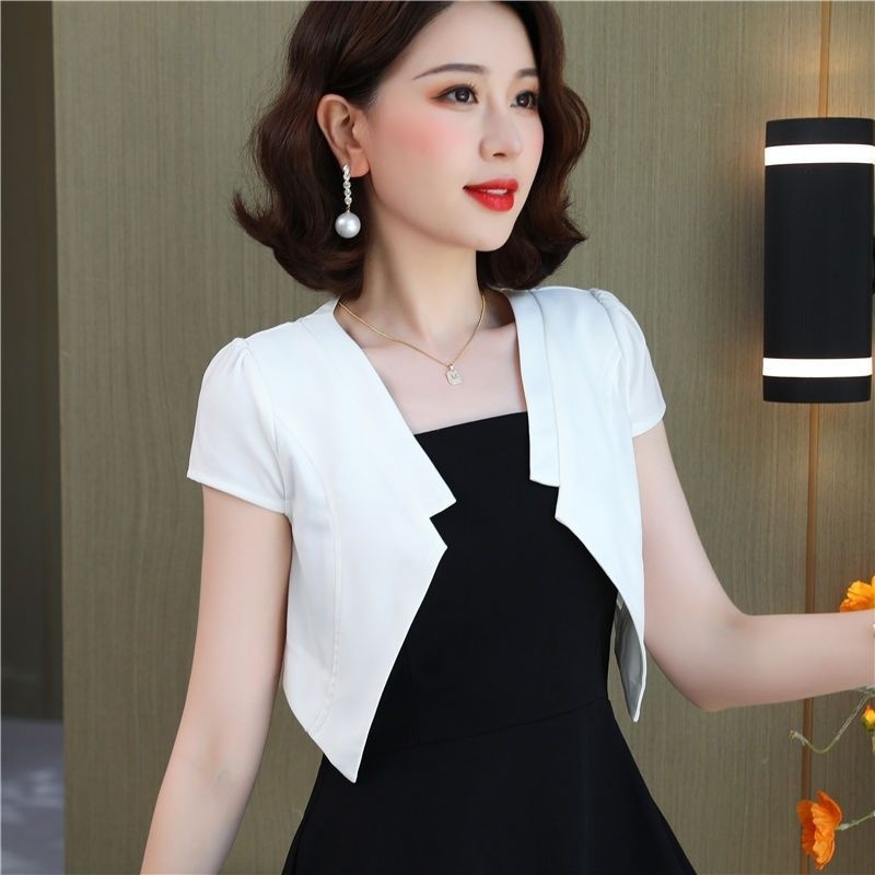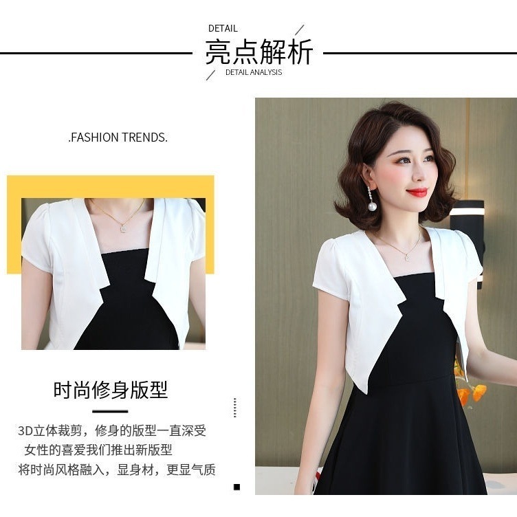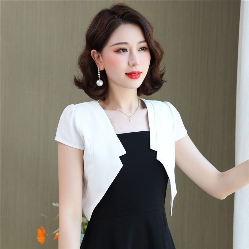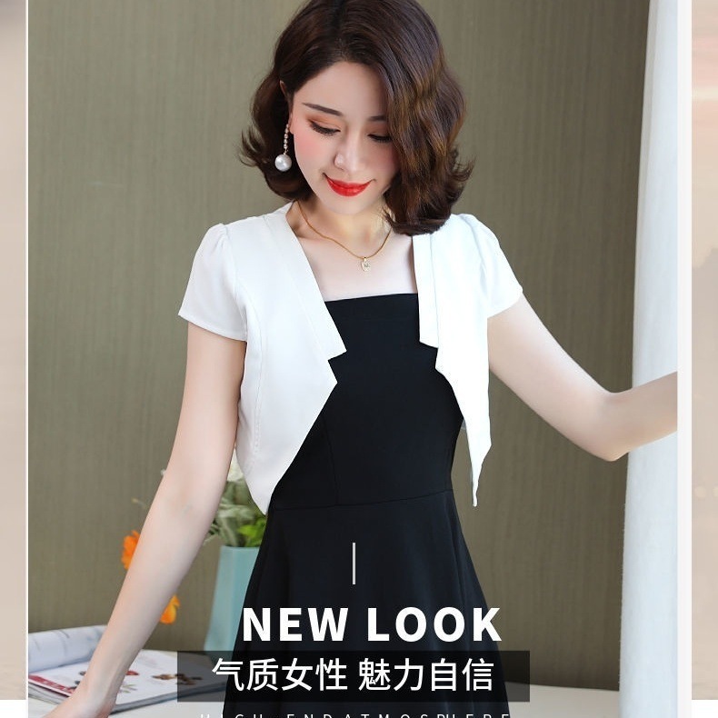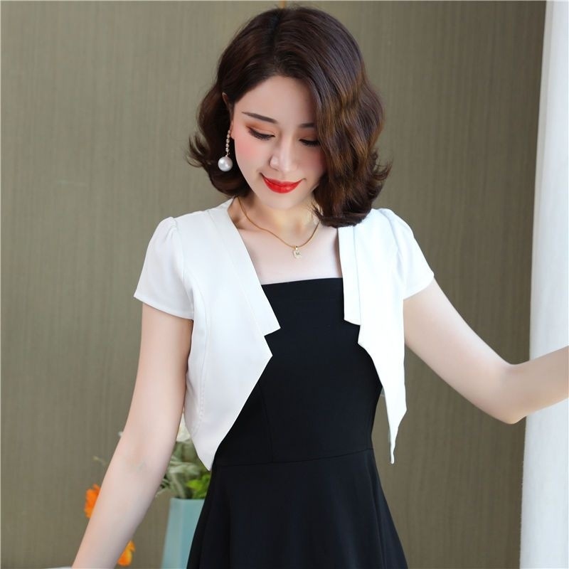 여자 허리 코트 울트라 짧은 여름 새 반팔 얇은 쉬폰 셔츠 스커트 카디건 외부스토어 가기