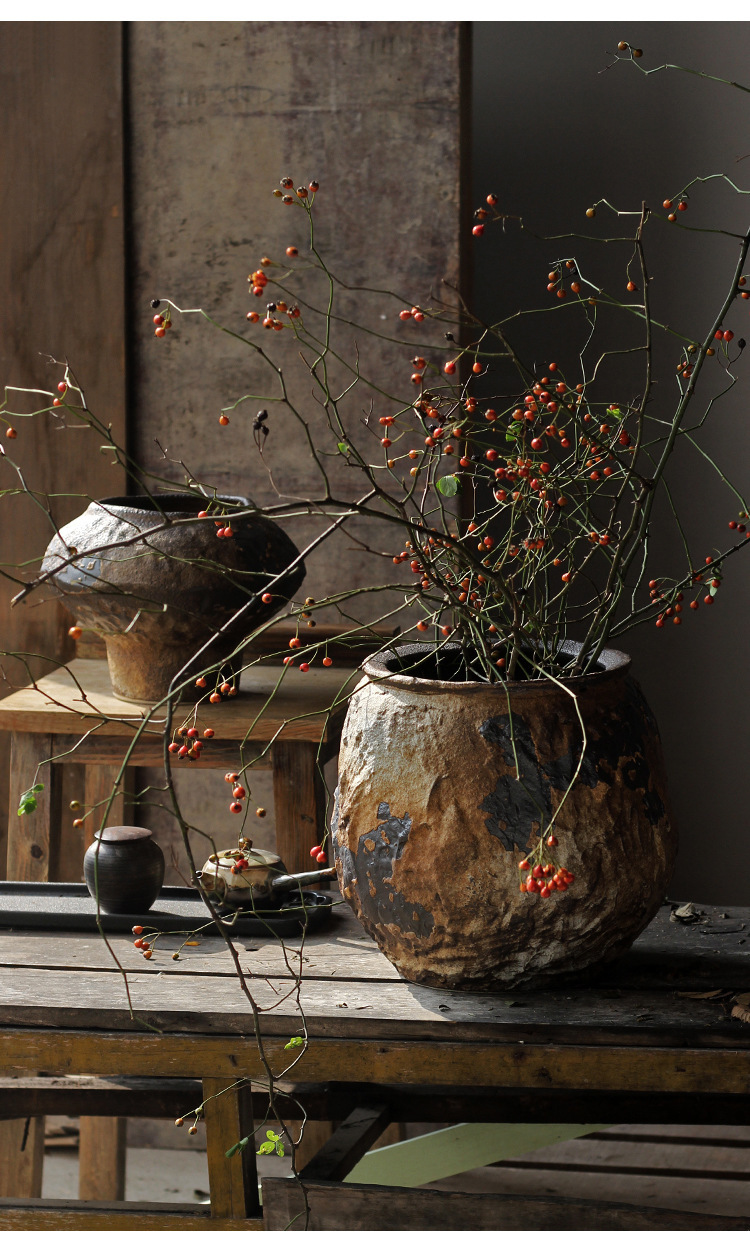 빈티지 세라믹 꽃병 장식 수제 거친 오래 된 꽃 꽃병 도자기 냄비 꽃 삽화 무성 스타일 선 식물 꽃 냄비스토어 가기