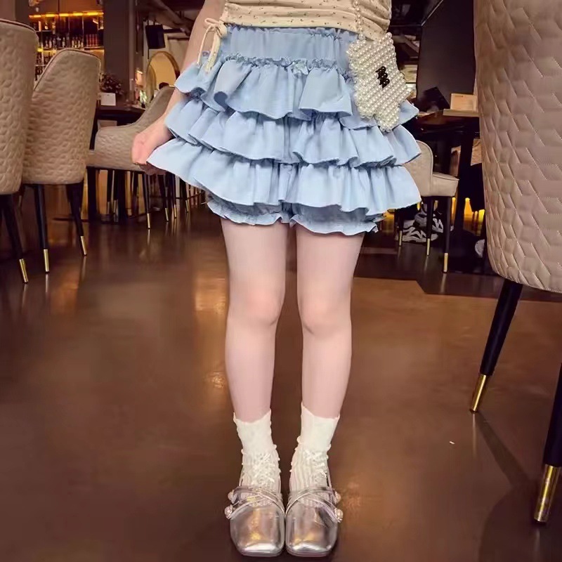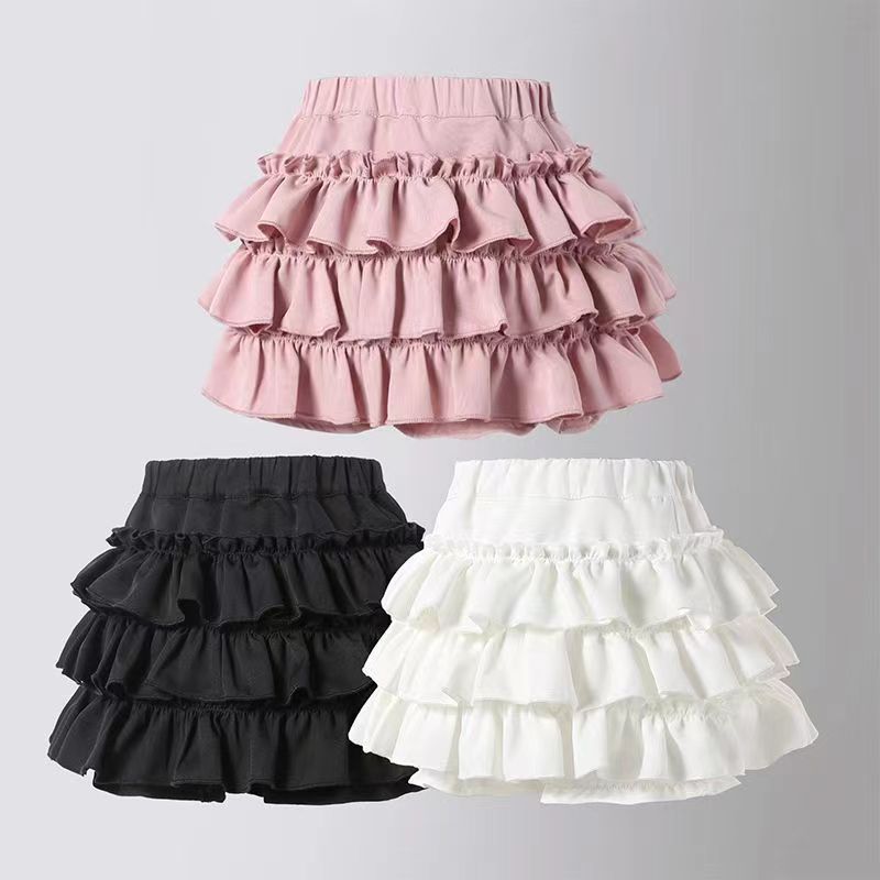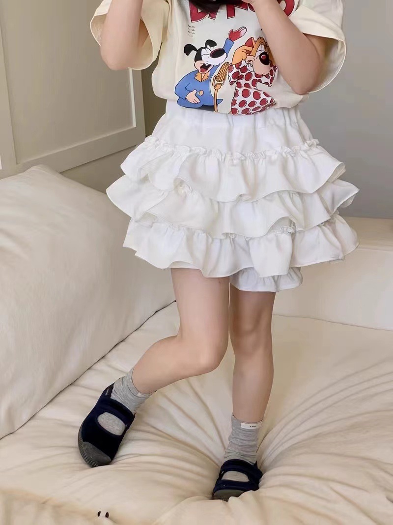 여자 퍼프 스커트 어린이 케이크 스커트 2025 봄과 여름 짧은 치마 어린 소녀 유행 흰색 주름 치마스토어 가기