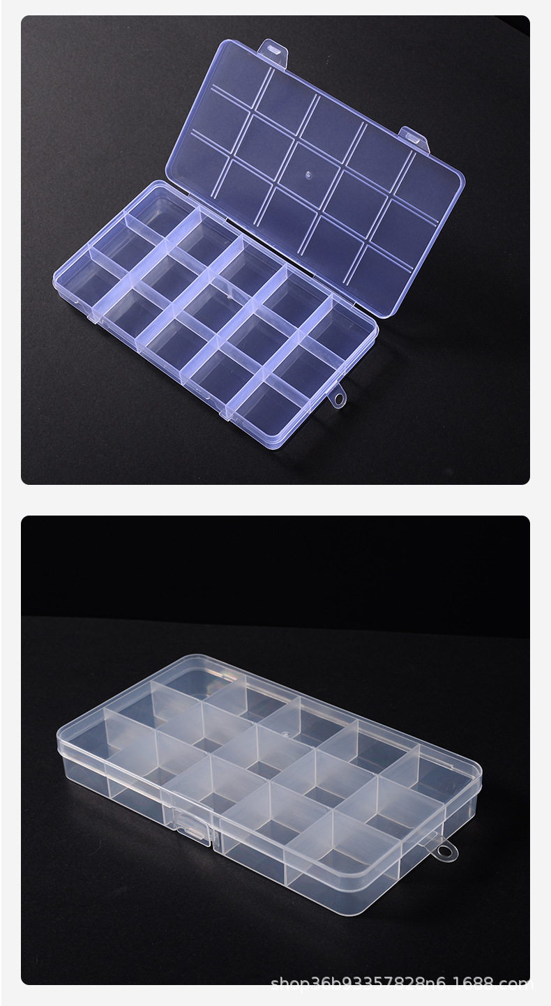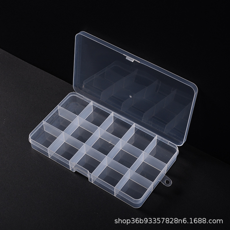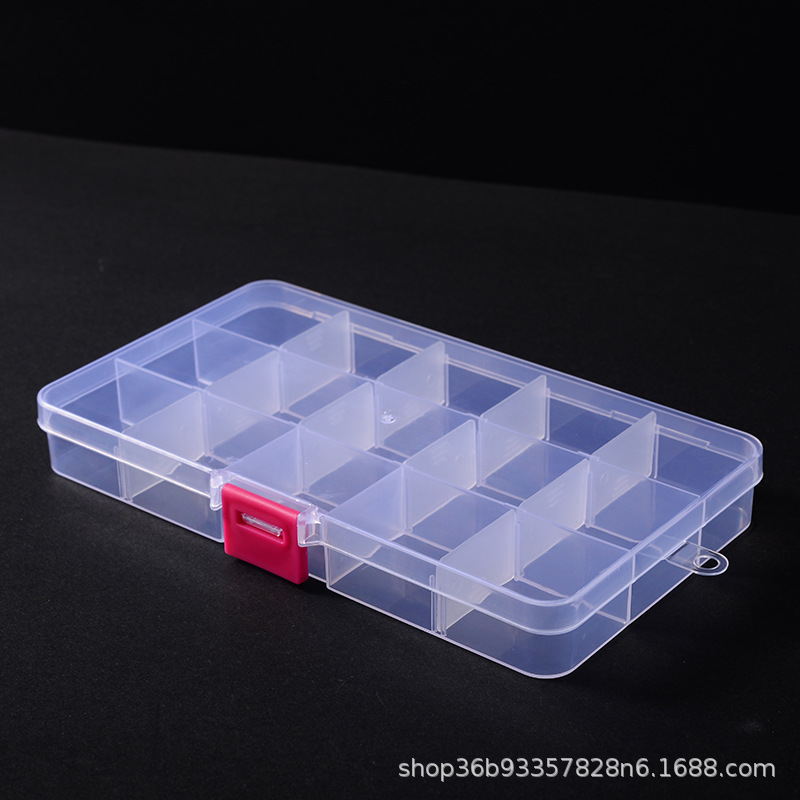 투명한 분할 분리형 15칸 플라스틱 상자 낚시 장비 화장품 액세서리 쌀 구슬 작은 제품 데스크탑 보관 상자
