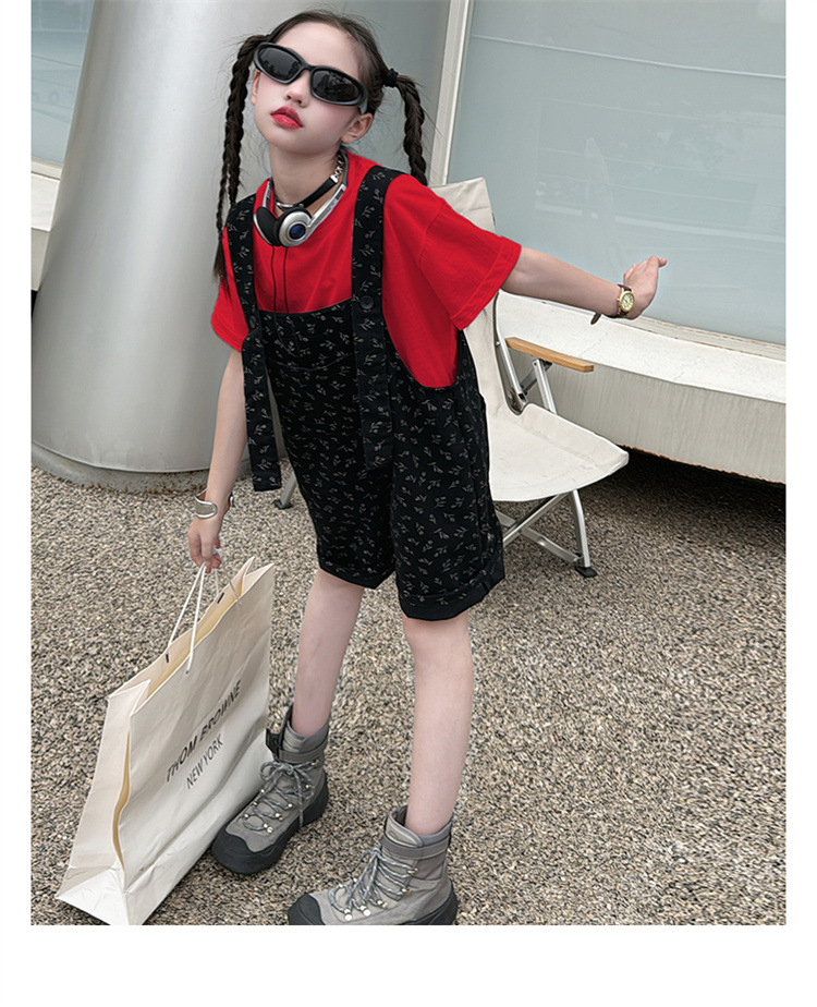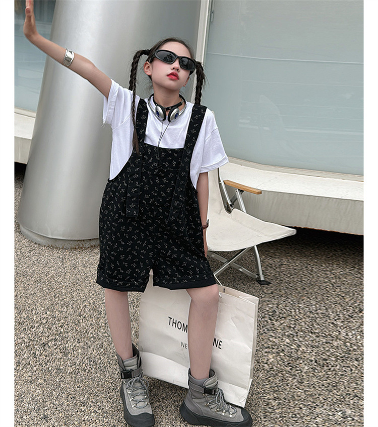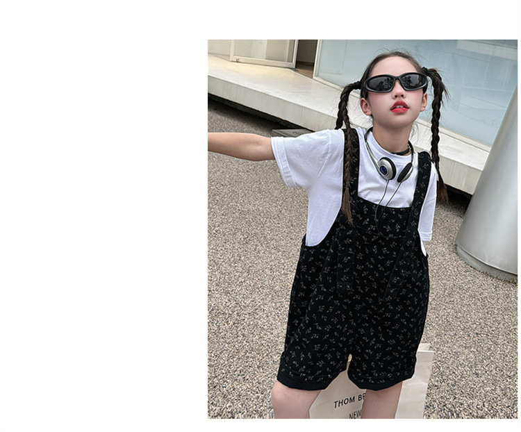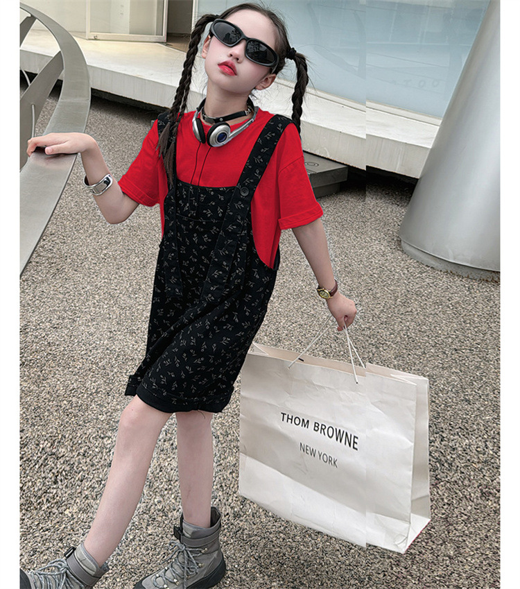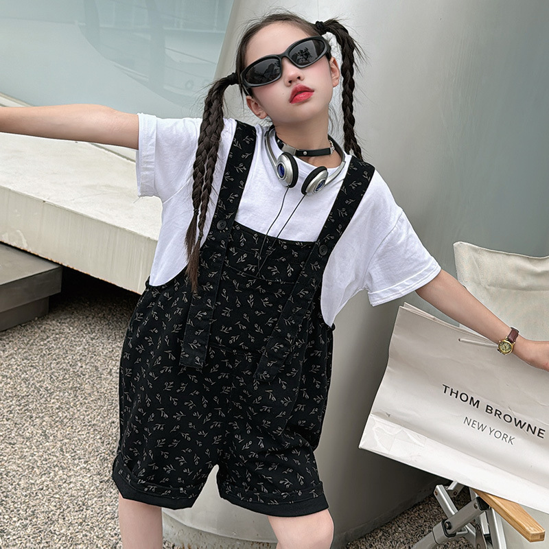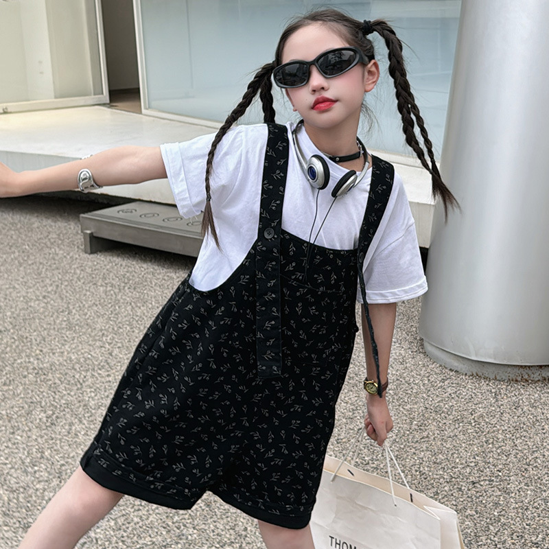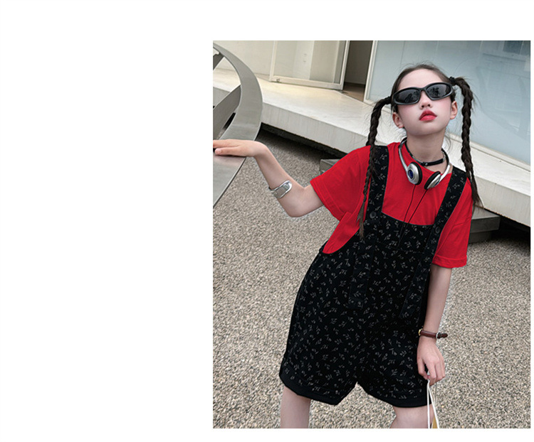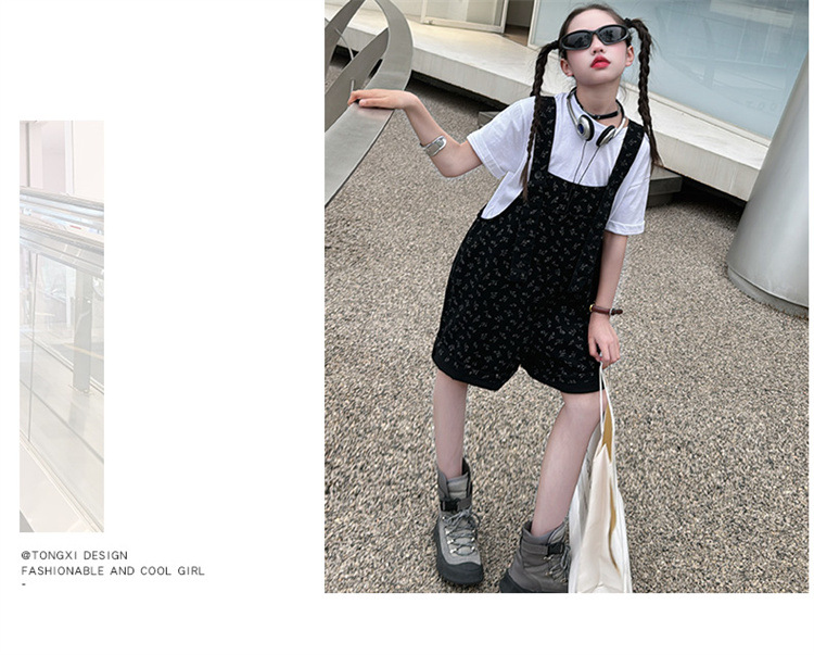 소녀 세트 2024 년 여름 새로운 어린이 서양식 스포츠 캐주얼 반팔 세트 바지 대형 어린이를위한 투피스 세트스토어 가기