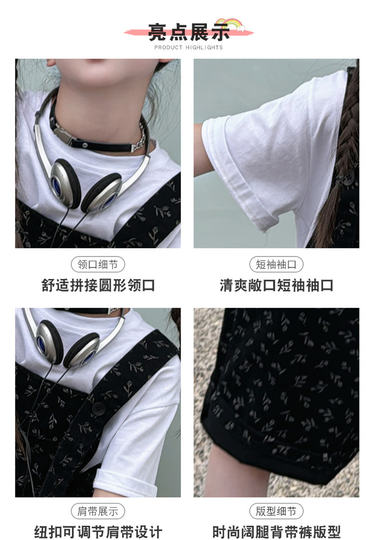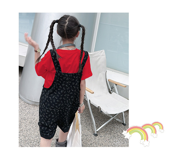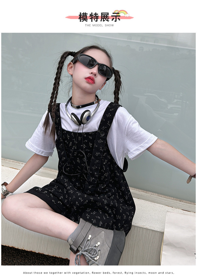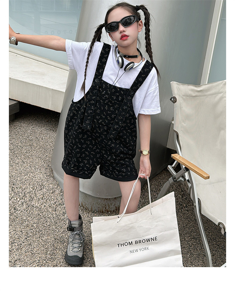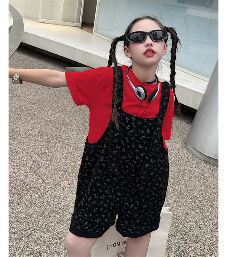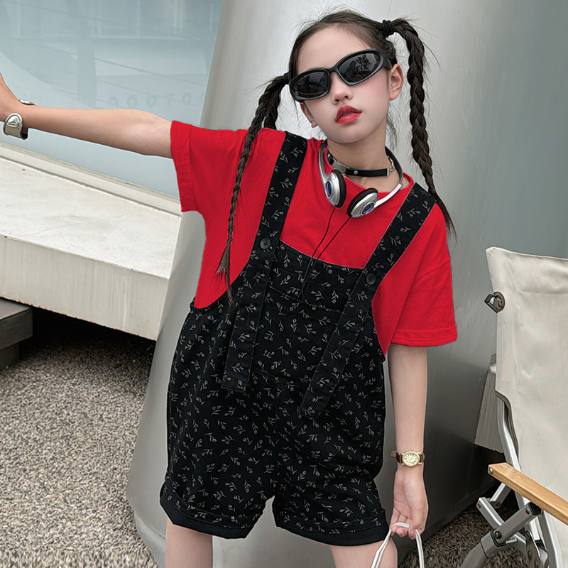 소녀 세트 2024 년 여름 새로운 어린이 서양식 스포츠 캐주얼 반팔 세트 바지 대형 어린이를위한 투피스 세트스토어 가기