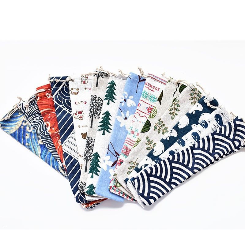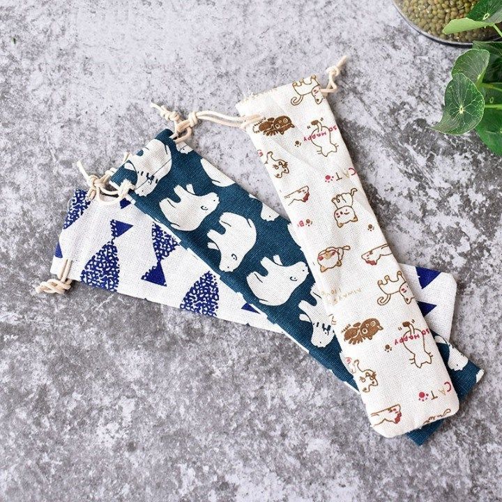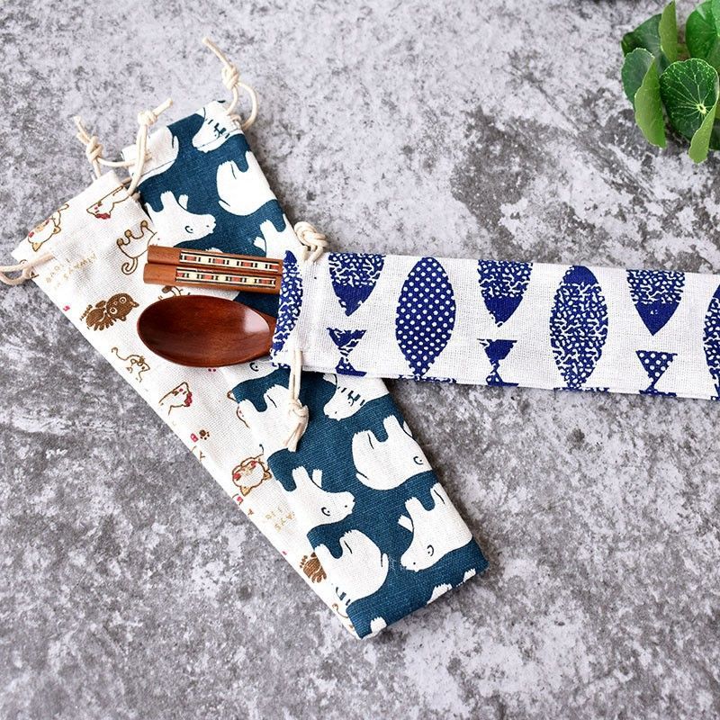 식기 젓가락 숟가락 가방 학생면 및 대마 젓가락 가방 만화 헝겊 가방 귀여운 휴대용 간단한 여행스토어 가기
