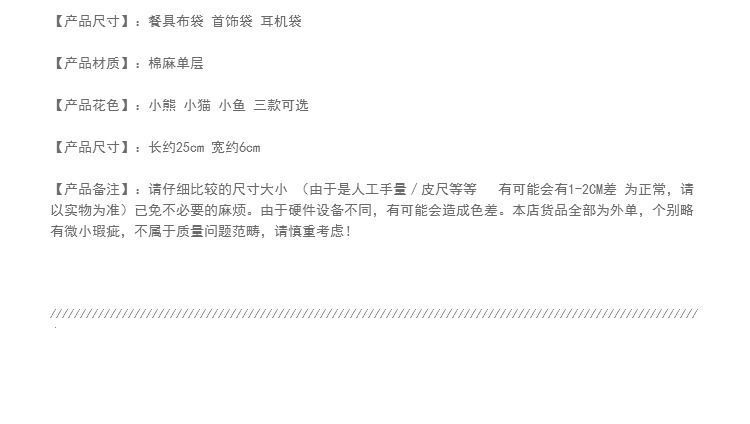 식기 젓가락 숟가락 가방 학생면 및 대마 젓가락 가방 만화 헝겊 가방 귀여운 휴대용 간단한 여행