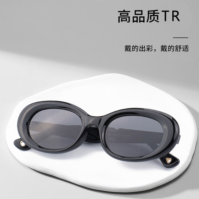 유럽과 미국의 타원형 고양이의 눈 선글라스 작은 2535 야외 안티-UV 햇빛 편광 선글라스를 보여주는 여성의 높은 얼굴스토어 가기