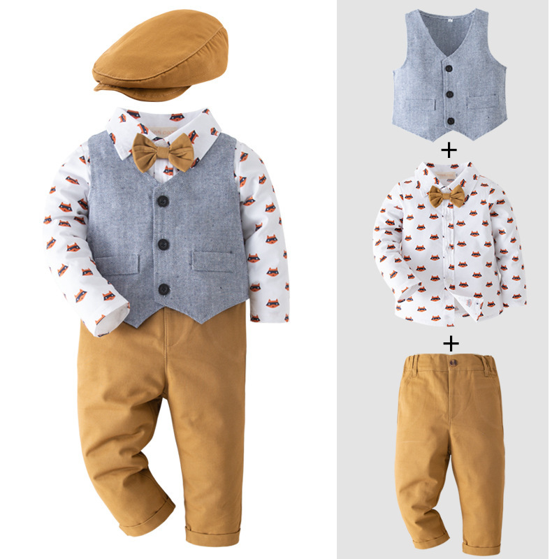 2024 대외 무역 어린이 신사 원피스 세트 소년 긴팔 여우 세트 유럽과 미국 아동복 멀티 피스 도매