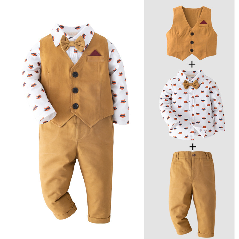 2024 대외 무역 어린이 신사 원피스 세트 소년 긴팔 여우 세트 유럽과 미국 아동복 멀티 피스 도매스토어 가기