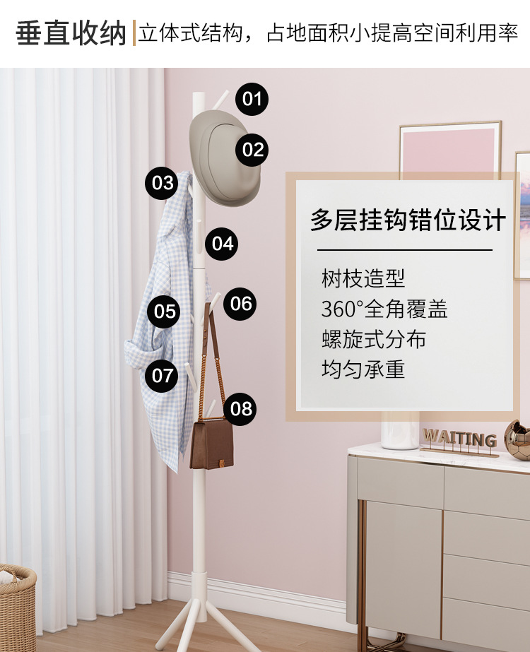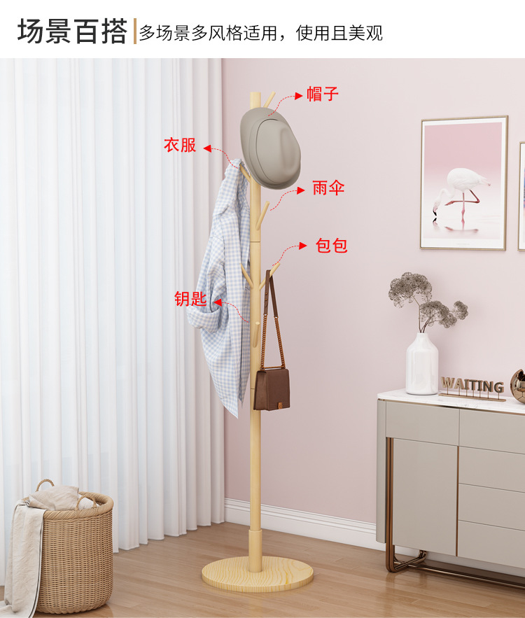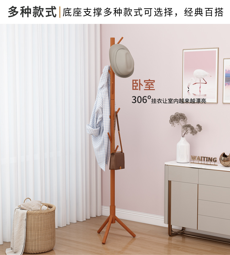 단단한 나무 바닥 옷걸이 방 옷걸이 침실 거실 수직 코트 랙 침실 바닥 걸이