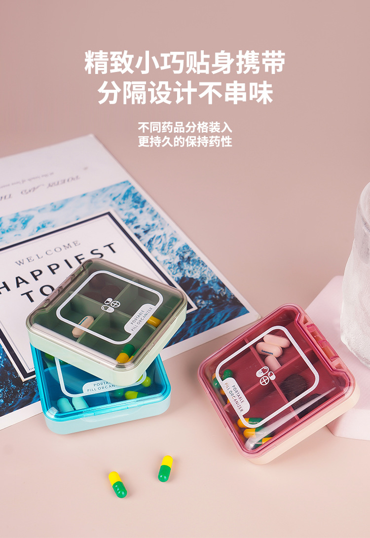 휴대용 작은 약 상자 미니 스몰 사이즈 운반 약 상자 4 구획 저장 상자 여행 정제 의학 서브 팩 약 상자스토어 가기