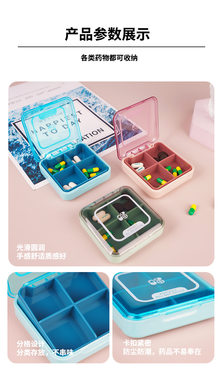 휴대용 작은 약 상자 미니 스몰 사이즈 운반 약 상자 4 구획 저장 상자 여행 정제 의학 서브 팩 약 상자