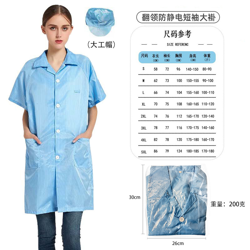 防静电短袖大褂透气无尘车间工作防护服带帽夏季长款褂式静电衣