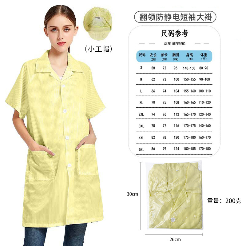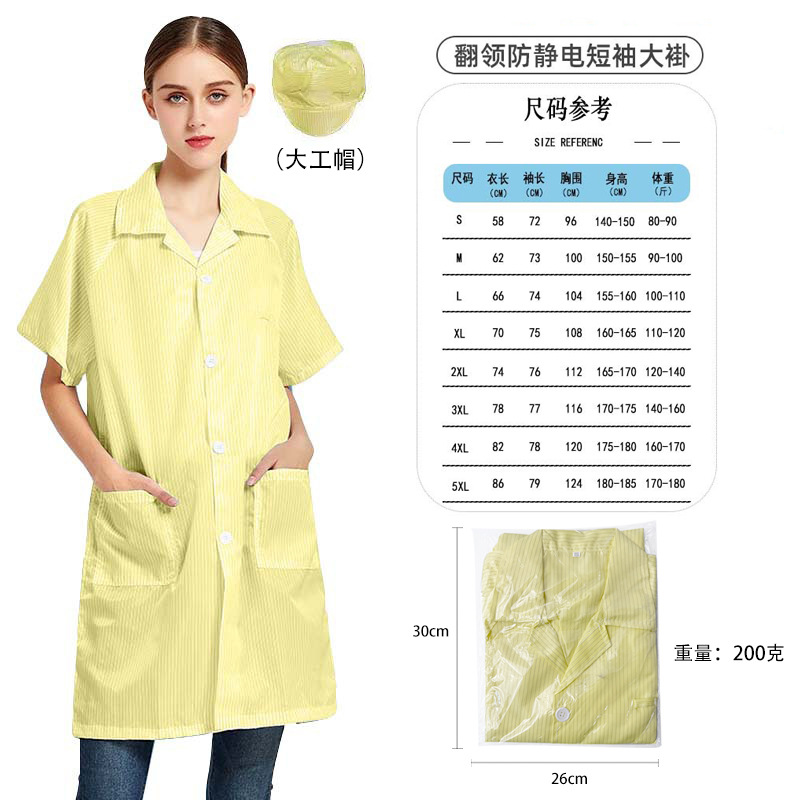 • 4XL; 노란색 반팔 실험실 코트 실험실 모자