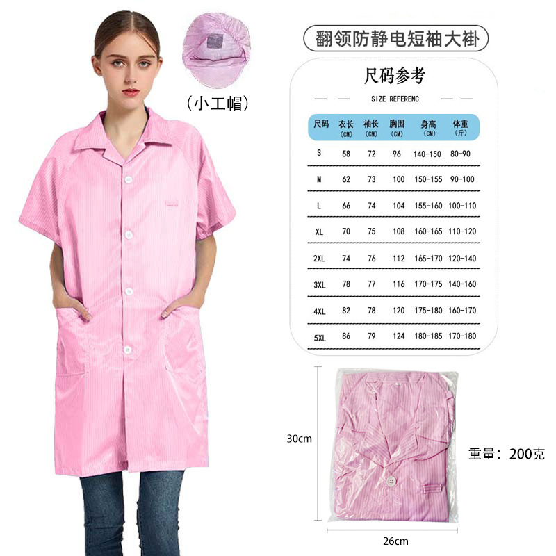 • 3XL; 핑크 반팔 실험실 코트 모자