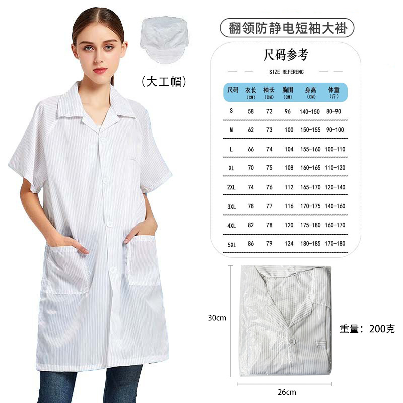 • 4XL; 흰색 반팔 실험실 코트 실험실 모자