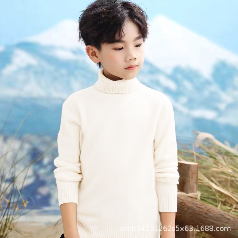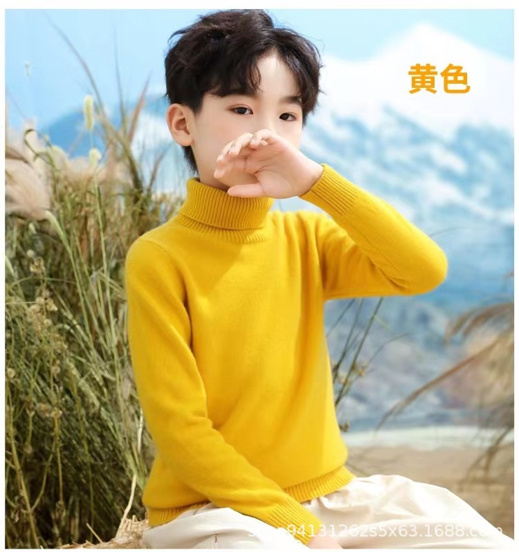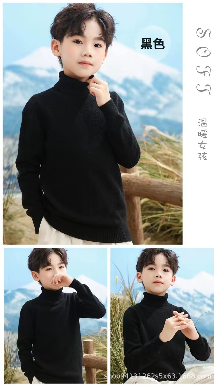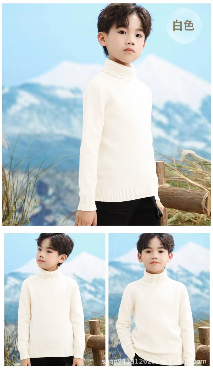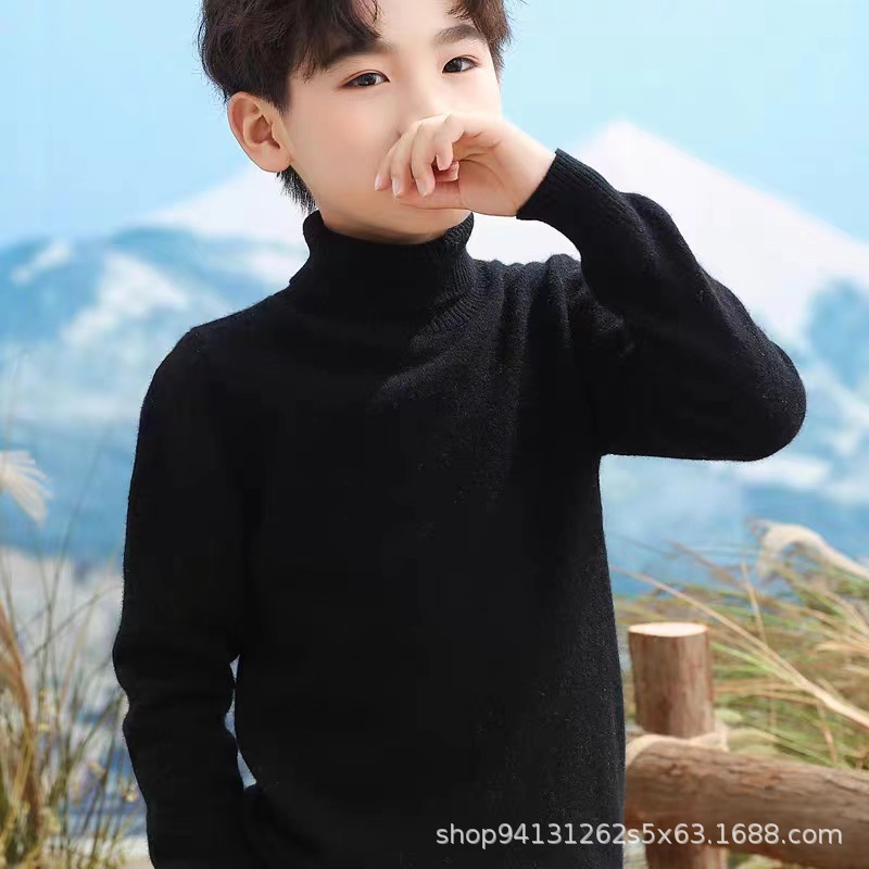 아동용 두꺼운 기모 스웨터 2025 가을 겨울 신상품 중대형 아동용 남아용 하이넥 세련된 니트 베이스 레이어스토어 가기