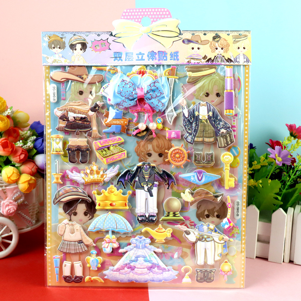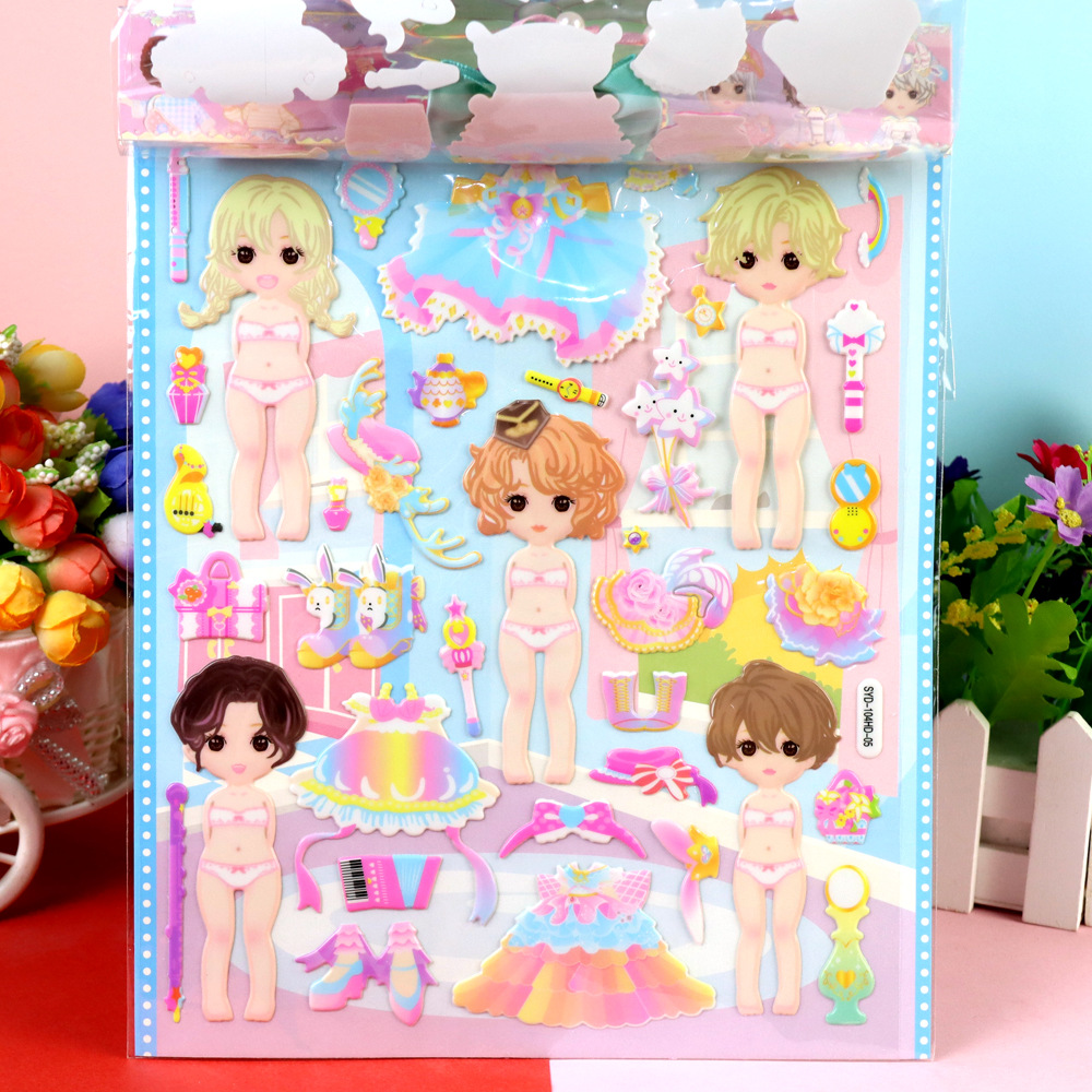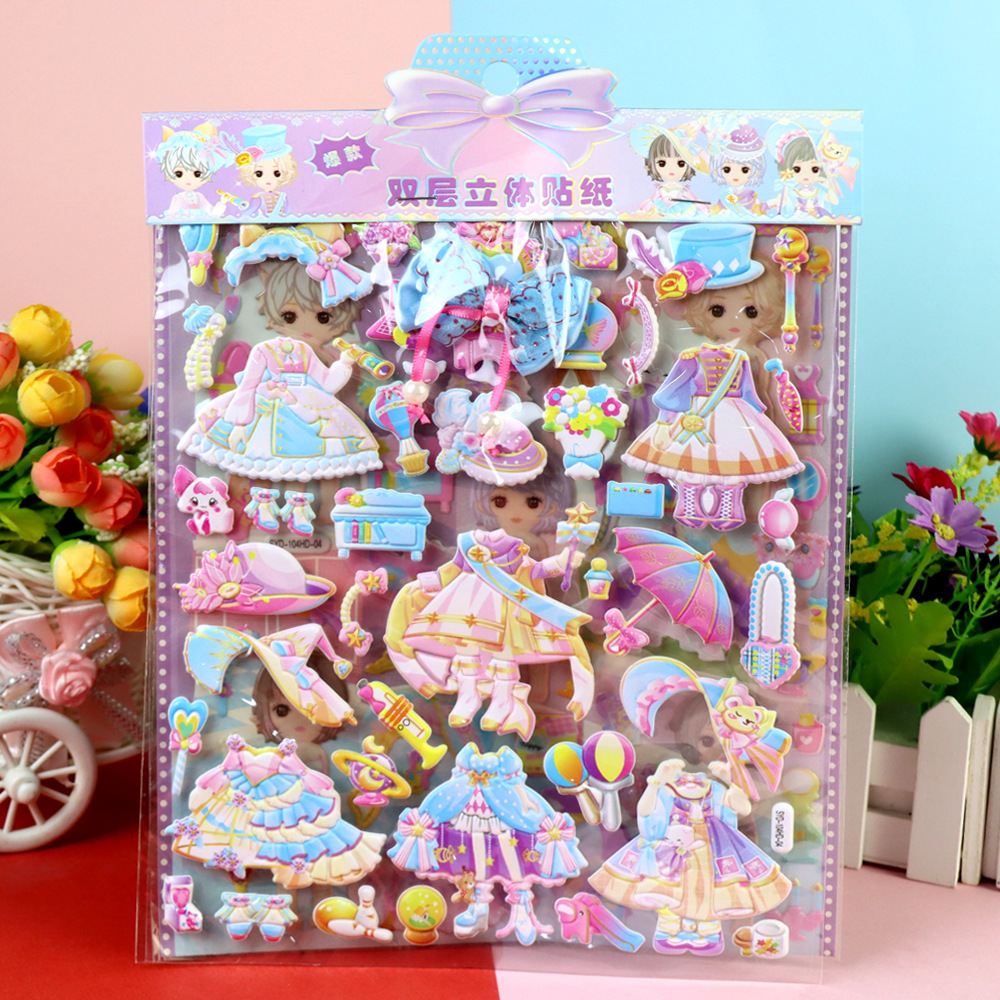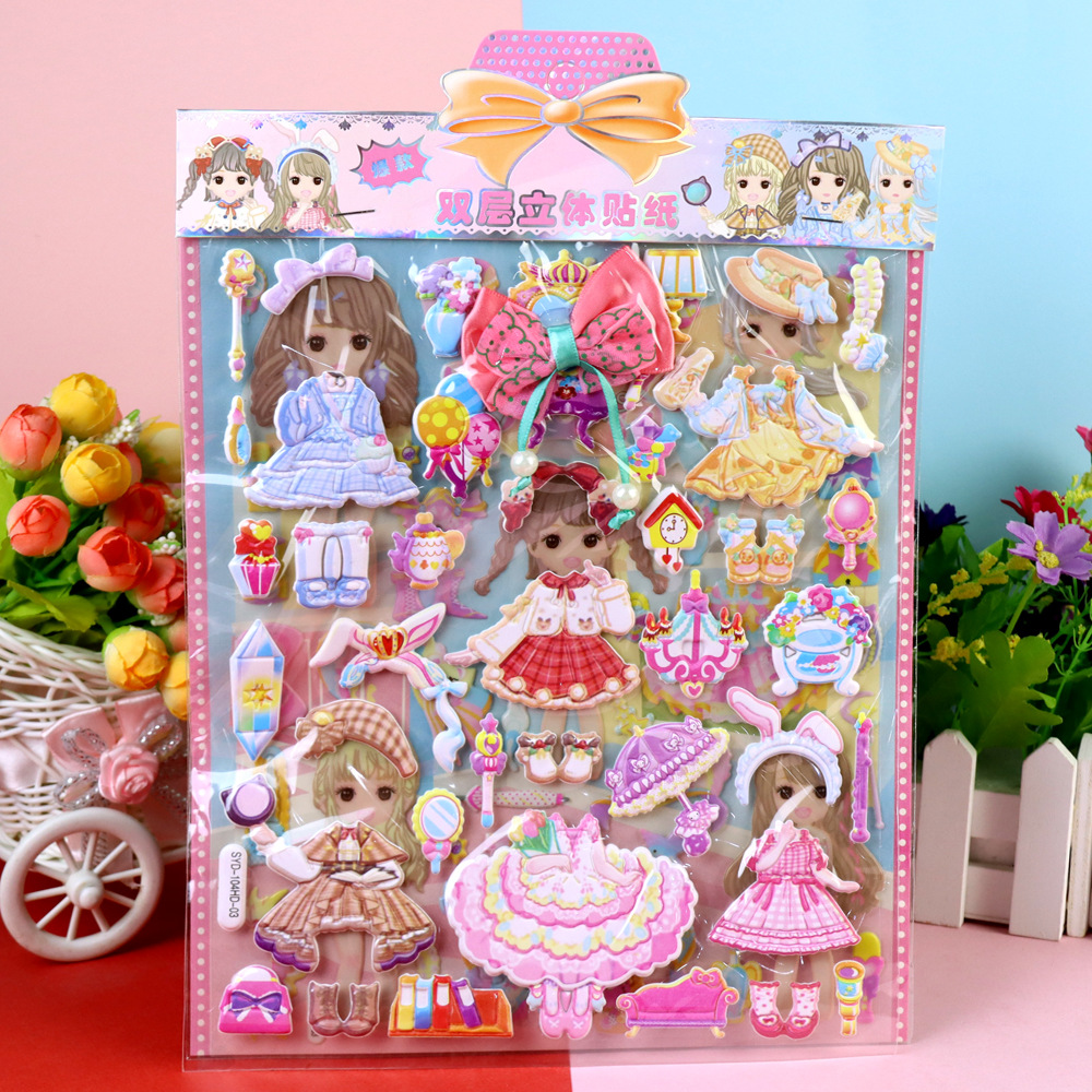큰 눈 모에 아기 원피스 소녀 스티커 어린이 만화 3 차원 드레싱 더블 레이어 헤어핀 헤어 코드 소녀 폼 스티커스토어 가기