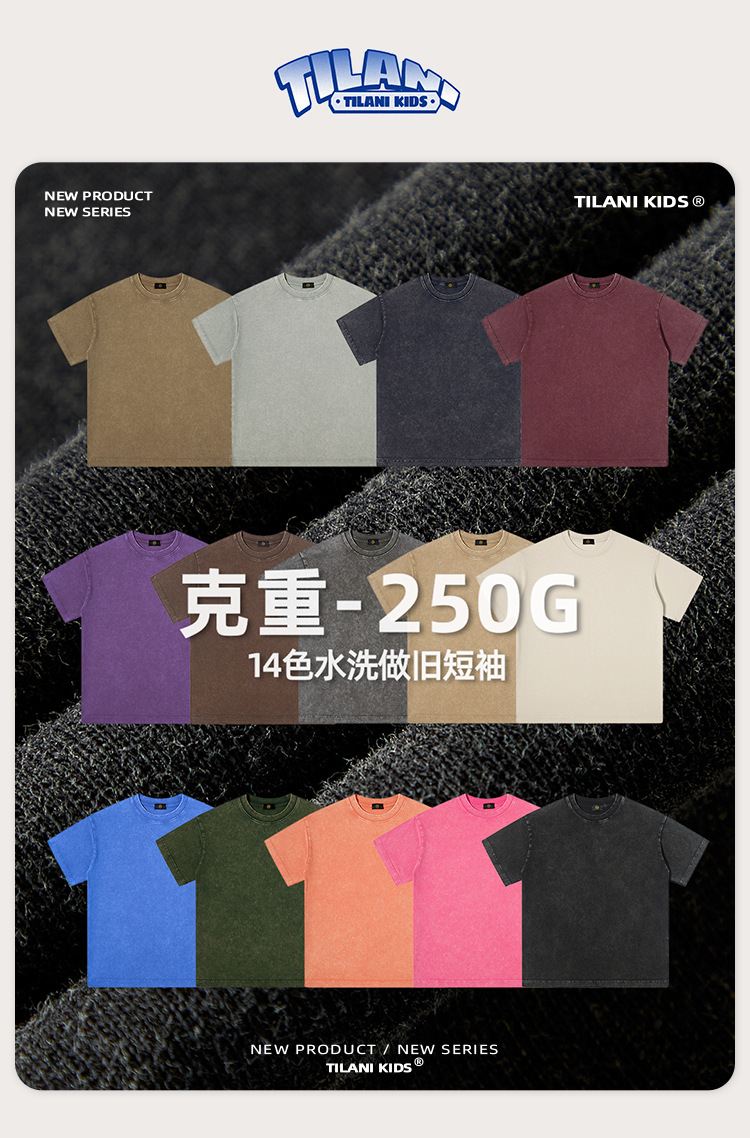 TILANI 아동복 유럽 및 미국 하이 스트리트 SNOW WASH 250G 무거운 미국 올드 세탁 어린이 짧은 소매 티셔츠스토어 가기