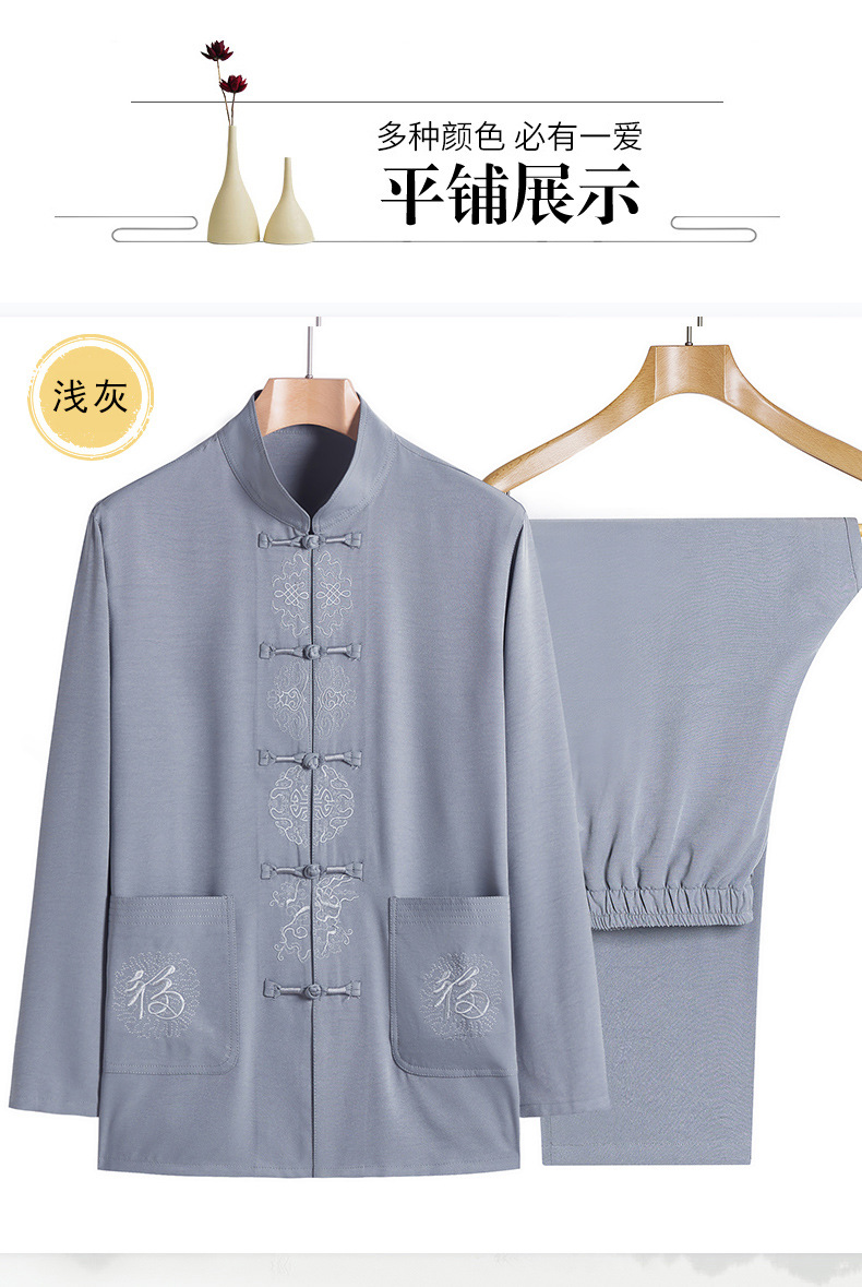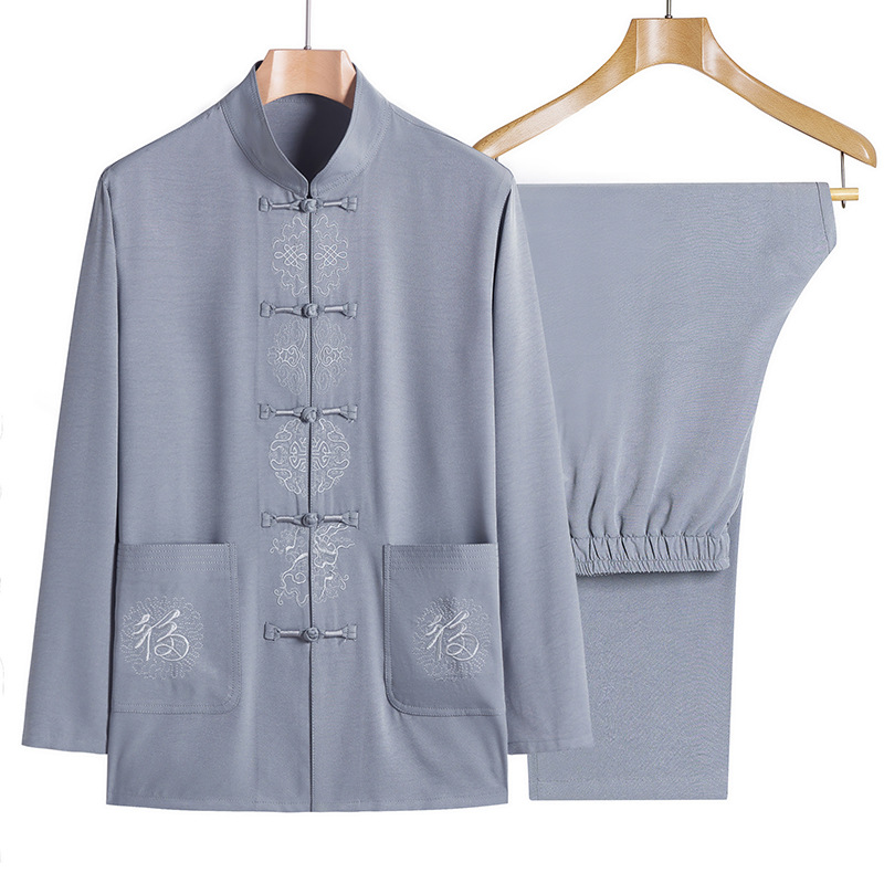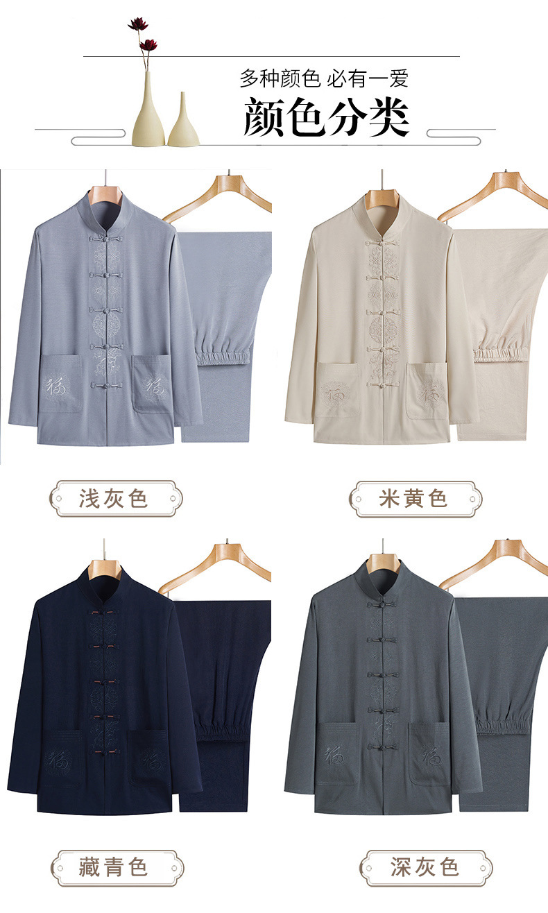 중년 및 노인 남성 탕 세트 할아버지 여름 긴팔 60 년 된 옷 중국식 얇은 세트 아버지 여름 옷스토어 가기