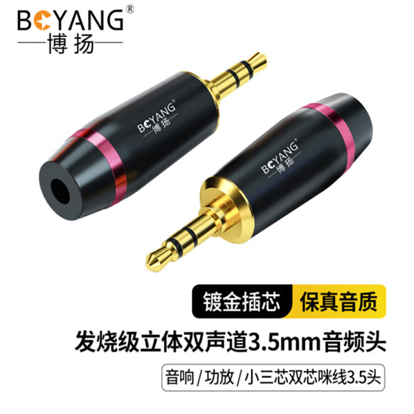 Boyang 3.5mm 오디오 헤드 골드 도금 작은 3 코어 더블 코어 Mi 와이어 3.5 헤드 밸런스 플러그 BY-3.5-FS10스토어 가기